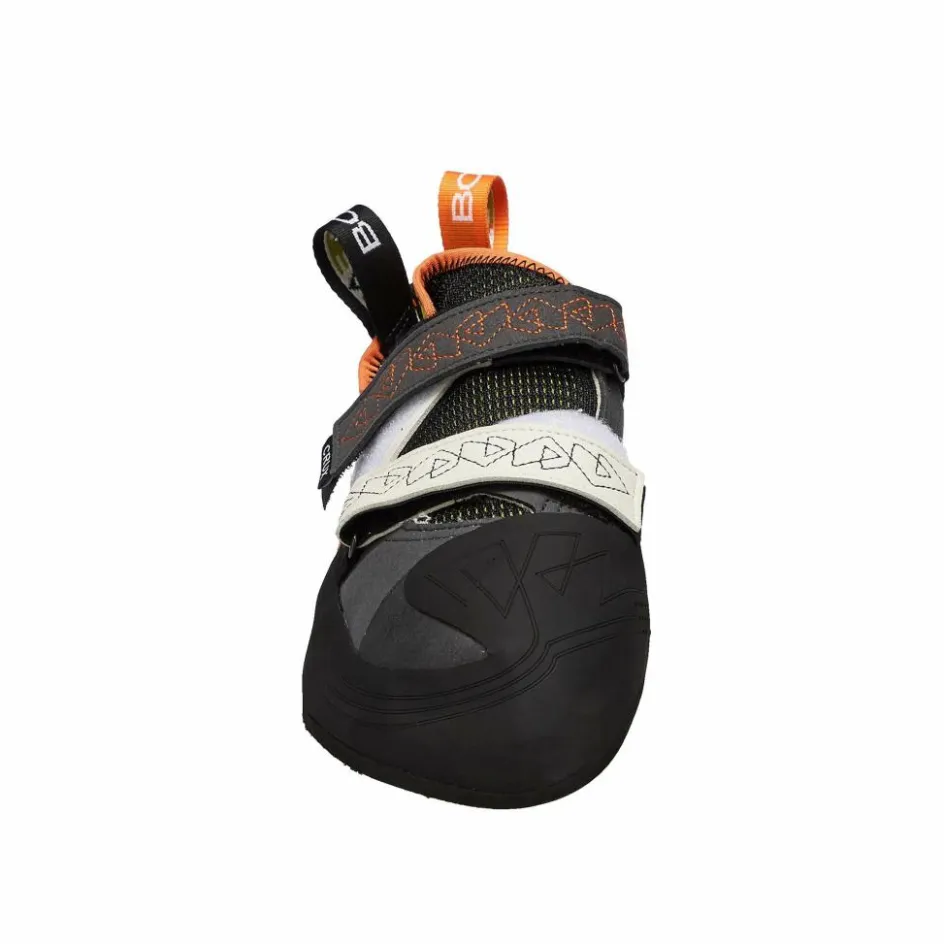Durch den sogenannten Wrap Rand und ein Torsionsband dehnt sich der Kletterschuh wenig, bietet einen perfekten Fersenhalt und eine gute Kraftübertragung auf die Zehenbox. Der asymmetrische Leisten und ein mittlerer Downturn unterstützen deinen Halt auf kleinsten Tritten und in Löchern.