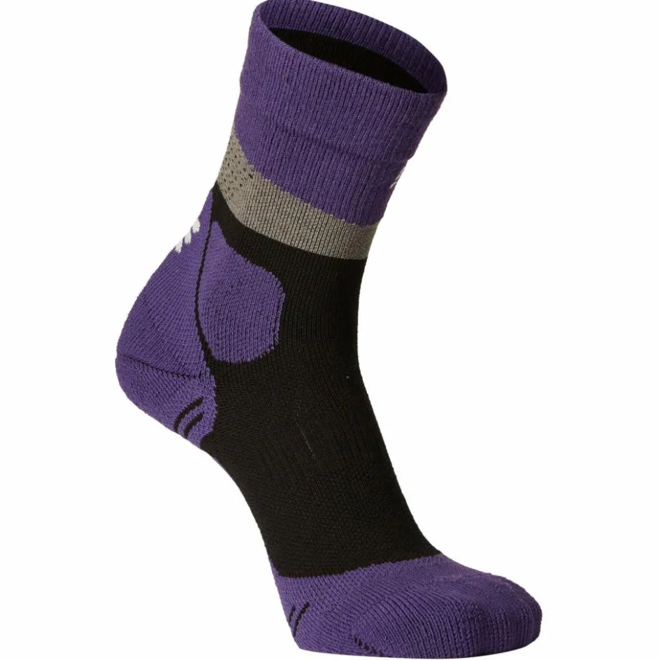 Denn vor allem der Fußrücken, aber auch die Bereiche des Knöchels und der Achillessehne verfügen über kräftige Polster. Diese bieten nicht nur Schutz vor Druck- und Scheurstellen, sie sorgen auch für einen hervorragenden Sitz des Fußes im Stiefel. Für eine bessere Luftzirkulation, gerade bei hohen Temperaturen oder hoher Intensität, verfügt die Socke im Wadenbereich über Mesheinsätze. Auch die Polster tragen zum Feuchtigkeitsaustausch und zur Luftzirkulation bei, sie verfügen über sogenannte Airflow-Channels.
