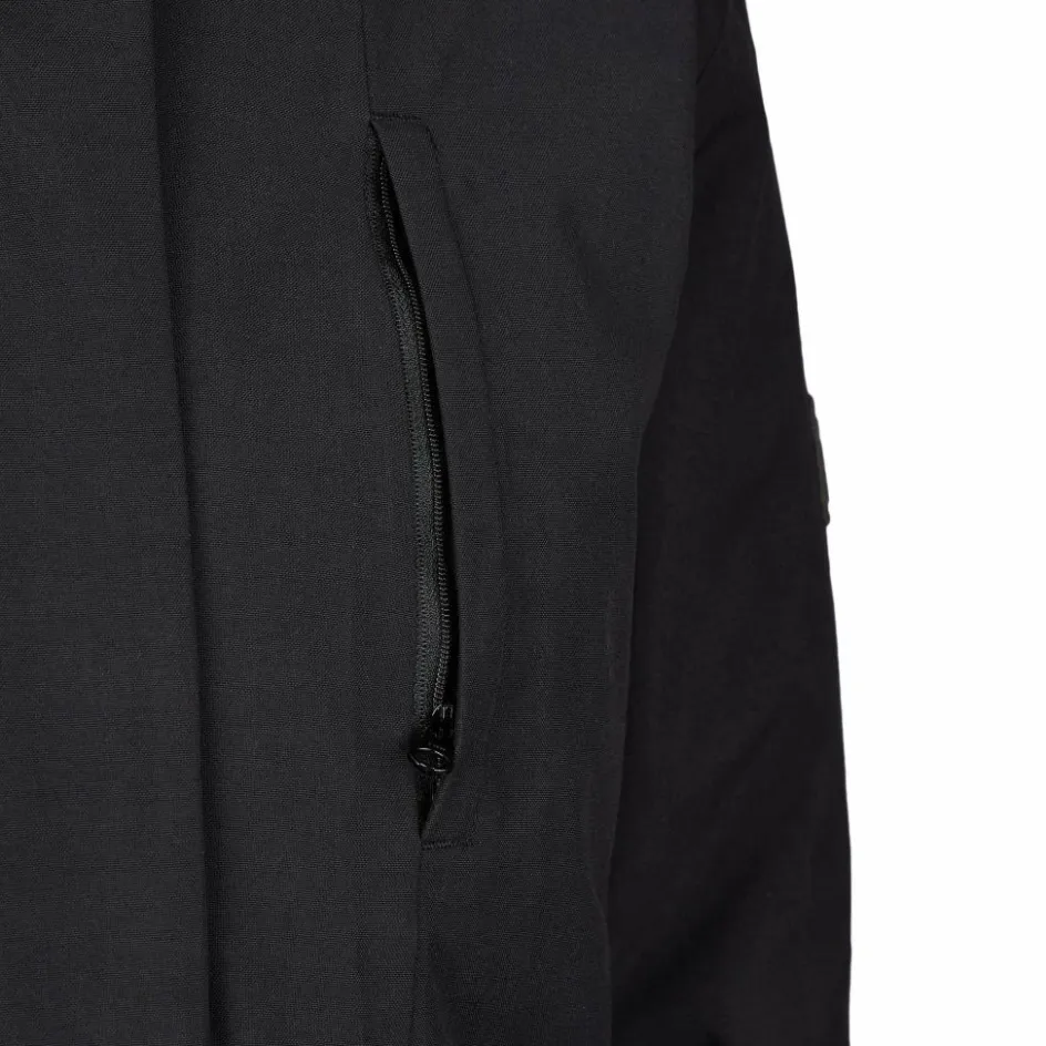 Reichen dir deine Mütze und dein Schal nicht aus, unterstützen dich Kapuze und Stehkragen beim Warmbleiben. Die mit Klettverschlüssen versehenen Ärmelabschlüsse kannst du nach Bedarf einstellen. Die Windschutzleiste über dem Reißverschluss macht es frostigen Böen besonders schwer. Genügend Stauraum für wichtige Habseligkeiten findest du in den Taschen innen sowie außen.