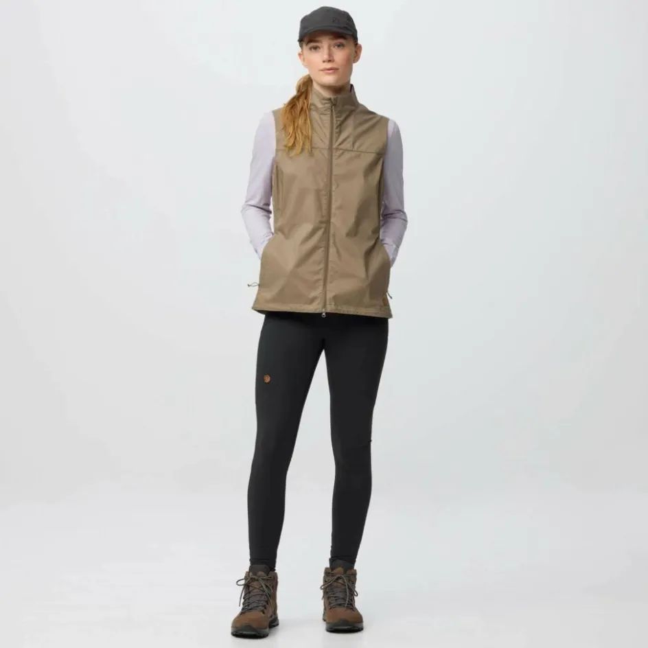 Das Material auf der Vorderseite der Abisko Vest W ist in der klassischen G-1000-Mixtur aus Polyester und Baumwolle gehalten; die lockere Webart macht es schön luftig – auch dank der Tatsache, dass diese leichte G-1000-Variante nicht gewachst ist. Der Mix aus Bio-Baumwolle und Polyester trocknet darüberhinaus schnell und ist überaus robust. Seine Luftdurchlässigkeit garantiert eine angenehme Luftzirkulation am Körper. Das ist prima, wenn du in der Wärme unterwegs bist: Ob auf deinem Städte-Trip im Süden oder auf deiner Sommer-Wandertour im Alpenvorland.