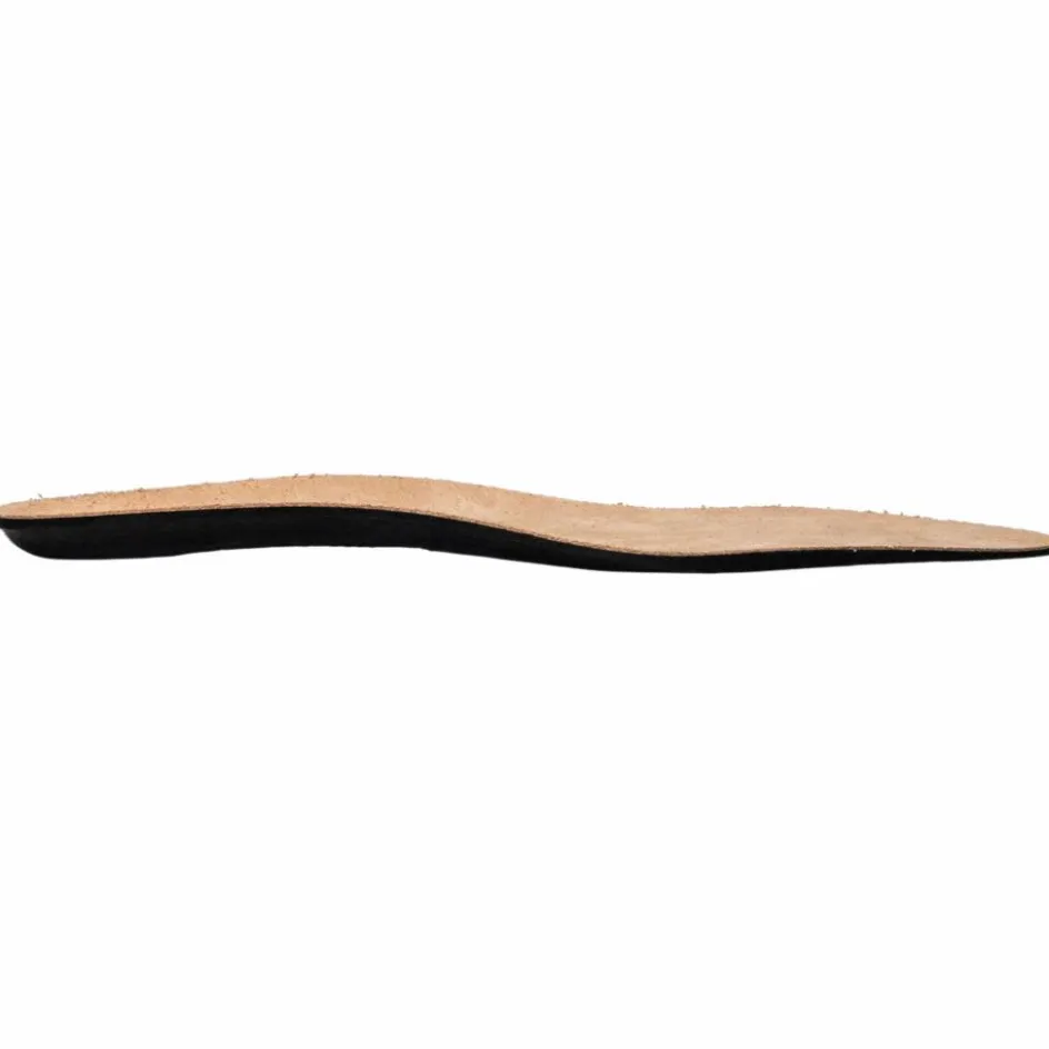 Diese Einlegesohle besteht aus sogennantem vegetabil gegerbten Leder, also mithilfe pflanzlicher Gerbstoffe produzierten Leder und einer dämpfenden PU-Schicht. Der Herstellungsprozess dieses Leders ist aufwendiger als bei herkömmlichem Leder, jedoch entstehen während der Produktion kaum Abfälle oder Schadstoffe. Das Material leitet entstehende Feuchtigkeit vom Fuß weg und speichert sie, während gleichzeitig eine gute Luftzirkulation innerhalb des Schuhs zustande kommt. Auch bei längerer Nutzung oder erhöhten Temperaturen bleibt das Leder beständig und lässt sich nicht verformen. Darunter liegt eine Schicht aus recyceltem PU-Schaum, der für eine ausgezeichnete Dämpfung beim Auftritt sorgt.
