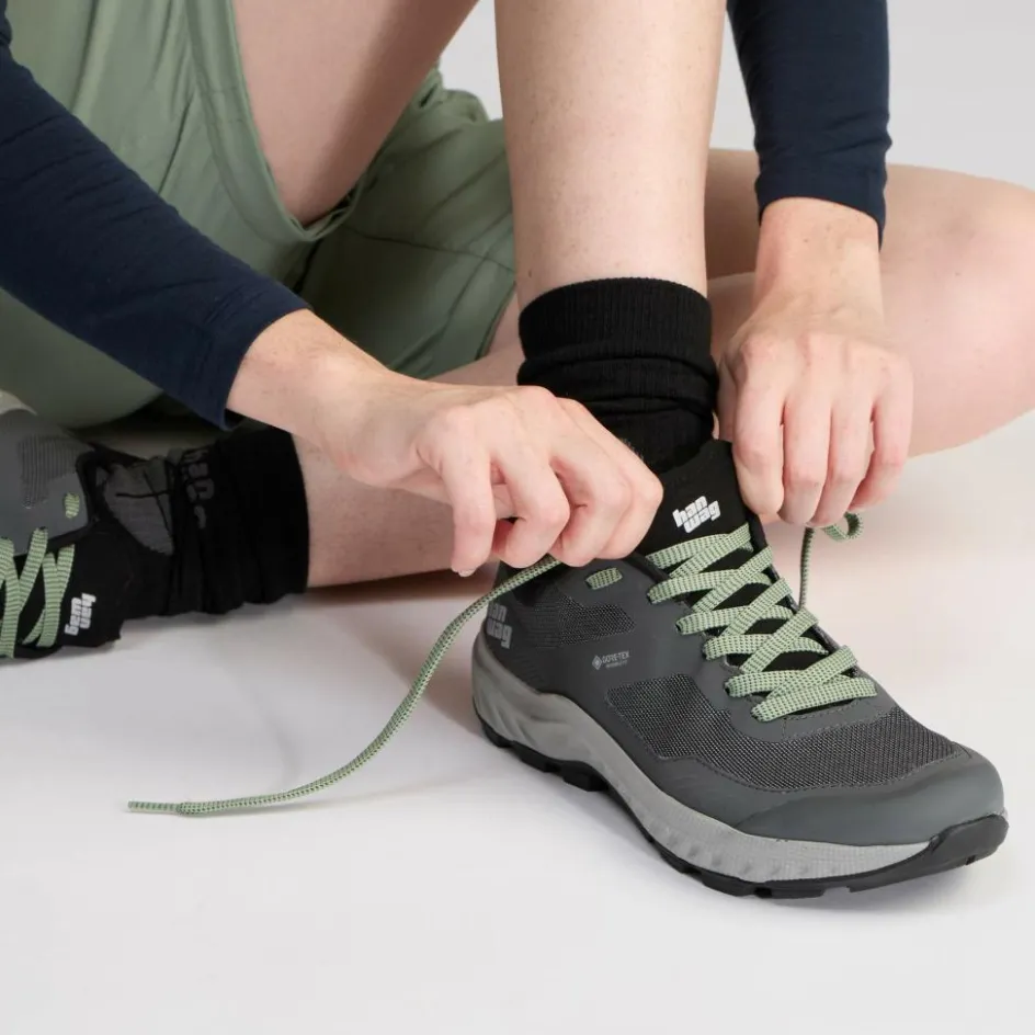 Außerdem verfügt der sportliche Wanderschuh selbstverständlich über eine Gore-Tex Membran. Und zwar die ePE-Version. Im Gegensatz zur bisher üblichen PTFE-Membran (für Chemiefans: Polytetrafluorethylen) wird beim Fertigungsprozess auf den Einsatz von PFAS-Chemikalien verzichtet. In puncto Wasserdichtigkeit und Atmungsaktivität musst du dir jedoch keine Sorgen über eine verringerte Leistungsfähigkeit machen. Die Werte bleiben die gleichen.