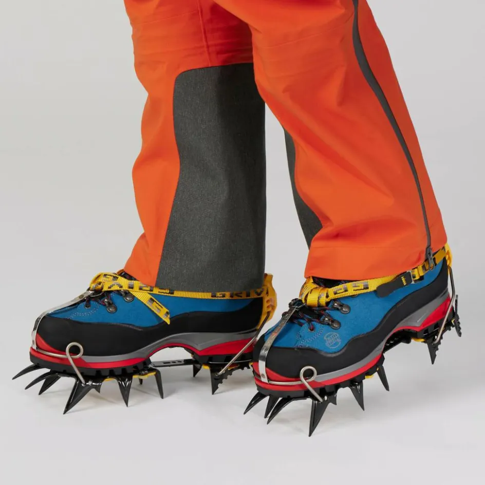 Der rundum kräftig gepolsterte Schaft schließt angenehm weich ab und passt sich optimal an die natürliche Laufbewegung an. Für zusätzlichen Komfort sorgen vorgeformte Beugefalten über dem Rist. Die feste, torsionssteife Sohlenkonstruktion bietet eine schmale, präzise Auftrittsfläche und sorgt für Halt in unwegsamem Gelände, auf felsigen Wegen und im Schnee. Geeignet für den Einsatz von Steigeisen aller Art.