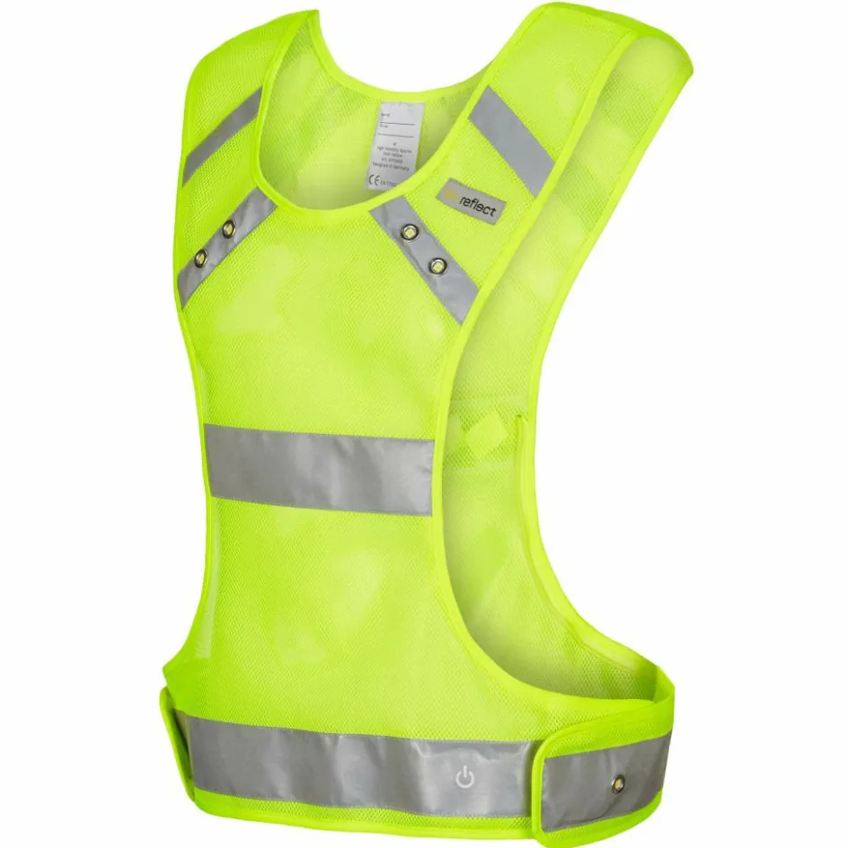 Dank der leuchtenden LEDs bist du schon aus einer Entfernung von 400 Metern zu sehen. Das ist laut heyReflect dreimal früher als bei Warnwesten ohne LED-Beleuchtung. Die LEDs sind auf der Weste so platziert, dass eine 360-Grad-Sichtbarkeit gegeben ist.