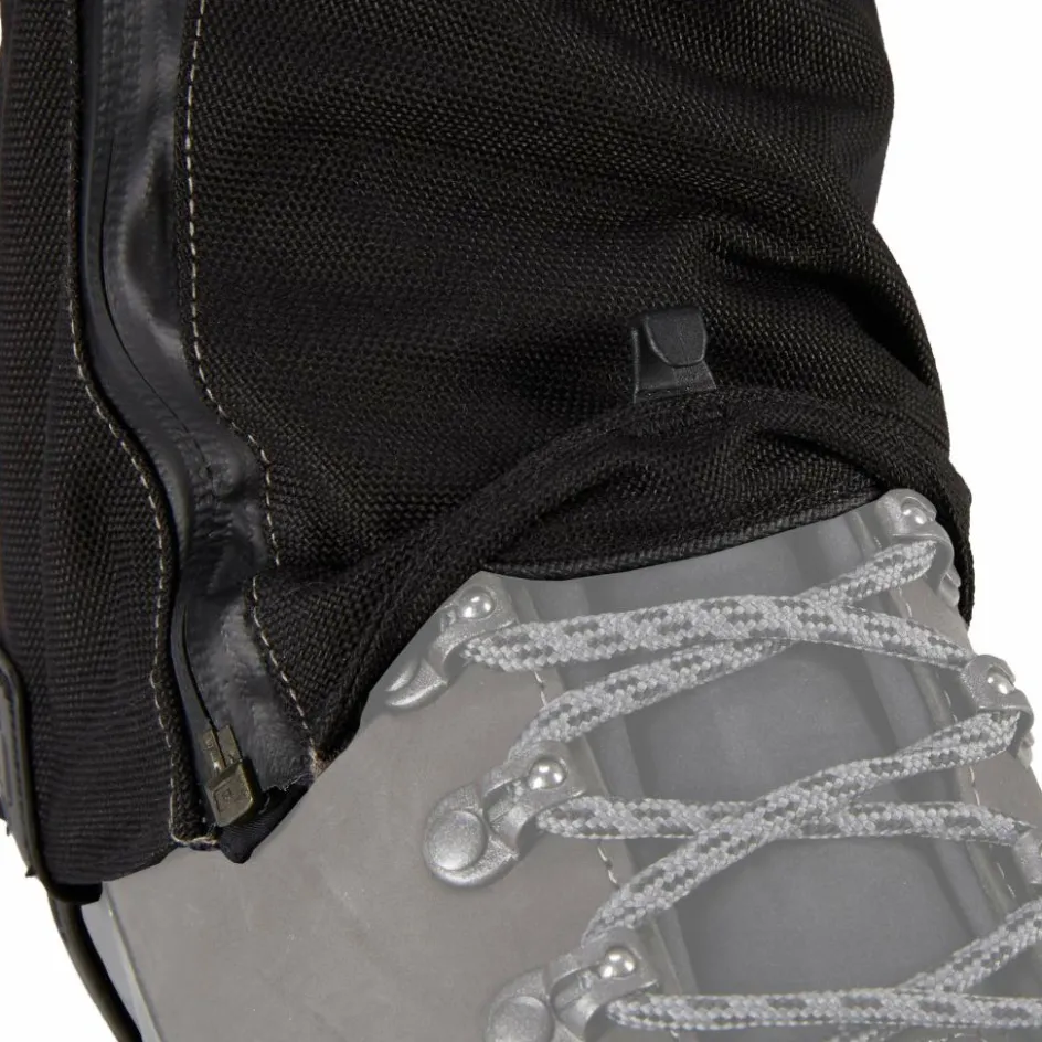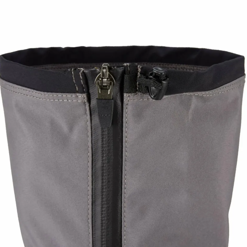 Die hoch geschnittenen Gamaschen sind äußerst robust konstruiert, um auch mit scharfkantigen Felsen und anderen Widrigkeiten zurechtzukommen, ohne Schaden zu nehmen. Der obere Bereich der hochwertigen Gamasche besteht aus Polyester-Gewebe. Der untere dunkel gefärbte Bereich hingegen aus PU-beschichtetem Nylon, das besonders widerstandsfähig ist.