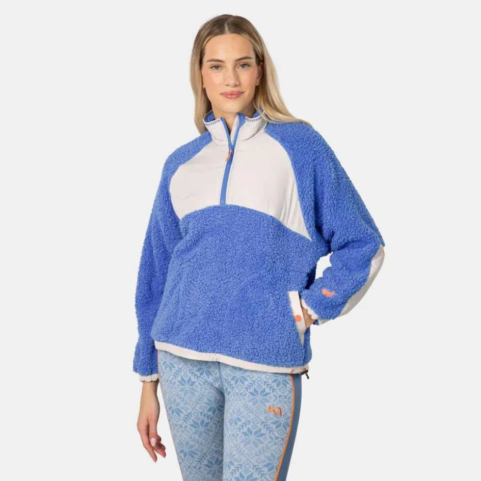 Das dicke, weiche Tedyfleece sorgt für jede Menge Wärme an kühlen Tagen. Gleichzeitig wirkt das Material feuchtigkeitsleitend und trocknet schnell. So hast du rasch wieder ein angenehm trockenes Tragegefühl, wenn du nach dem Work-out schnell den Pullover überziehst, aber noch nicht ganz „abgedampft“ bist. Zusätzlich kann der viertellange Front-Reißverschluss zur schnellen Abkühlung geöffnet werden.