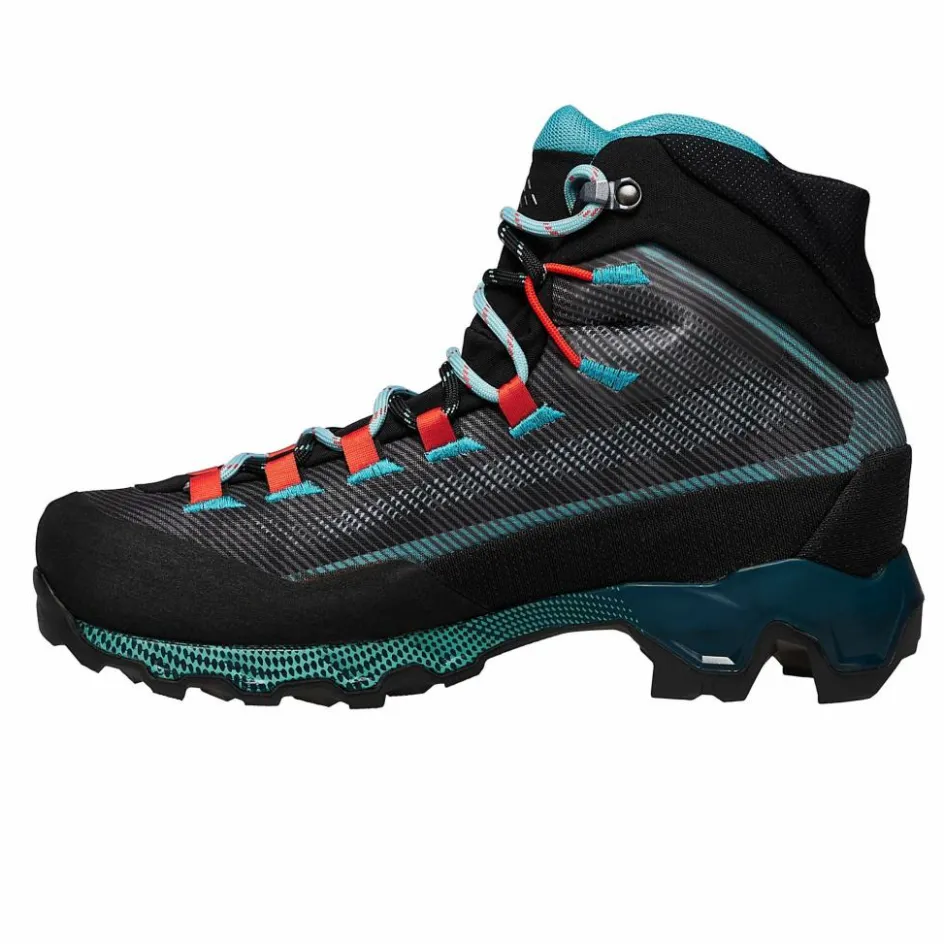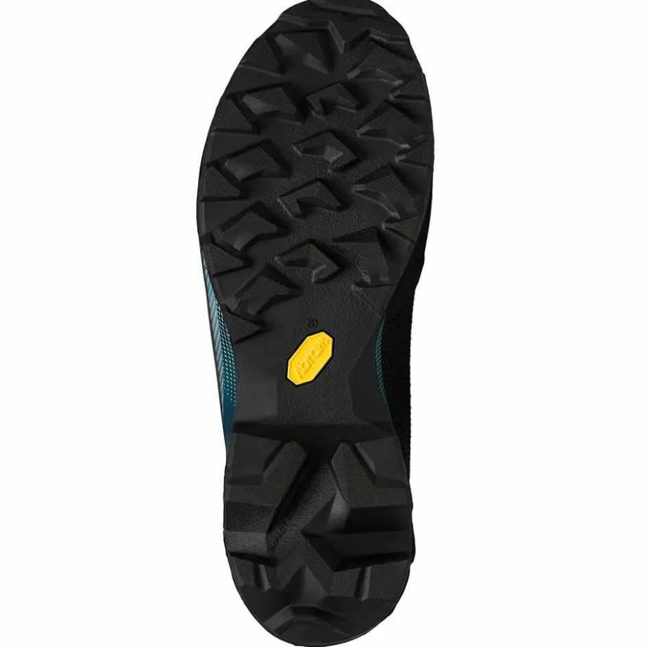 Auffällig ist beim Aequilibrium aber auch die Sohlenkonstruktion, genauer gesagt die Konstruktion der Ferse. Dank ihres überaus aggressiven Profils bietet sie selbst in sehr steilen Passagen noch überragenden Halt. Die kräftige Zwischensohle aus PU wirkt zudem stoßabsorbierend und beugt somit Ermüdungserscheinungen vor. Die Vibram-Gummiprofilsohle kommt aber nicht nur mit steilen Wegen, sondern auch losen und rutschigen Untergründen bestens zurecht.