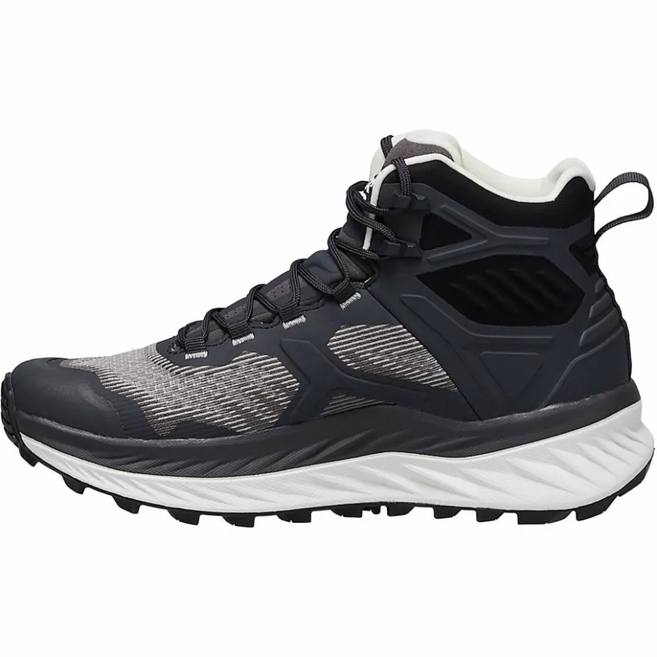 Letztere sorgt aber nicht nur für ein geringes Gewicht, sondern auch für ein hervorragendes Maß an Komfort. Dank erstklassiger Dämpfung wirkt der Stiefel stark stoßabsorbierend, wodurch er Ermüdungserscheinungen vorbeugt und die Muskulatur schont. Dass die Sohlenkonstruktion aus dem Trailrunningbereich kommt, ist auch an der Laufsohle zu erkennen. Diese besteht aus einer eher weichen Gummimischung und verfügt über ein aggressives Profil, das selbst in steilem Gelände oder auf losem Untergrund mühelos zurechtkommt.