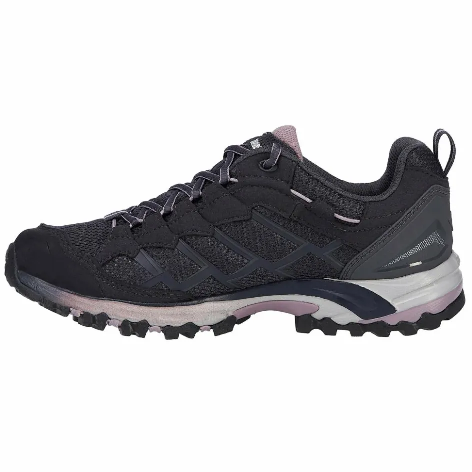 Der Halbschuh ist aus leichten Synthetikmaterialien gefertigt, die partiell mit Veloursleder verstärkt werden. Fersenbereich und Schuhspitze sind zusätzlich mit stabilen Kappen aus Gummi, bzw. Kunststoff geschützt. Regenwetter macht dem Schuh auch nichts aus, denn eine Gore-Tex Membran macht ihn zuverlässig wasserdicht und obendrein atmungsaktiv. Auch wird durch die Membran ein vernünftiger Feuchtigkeitsaustausch gewährleistet und das Fußklima angenehm reguliert.
