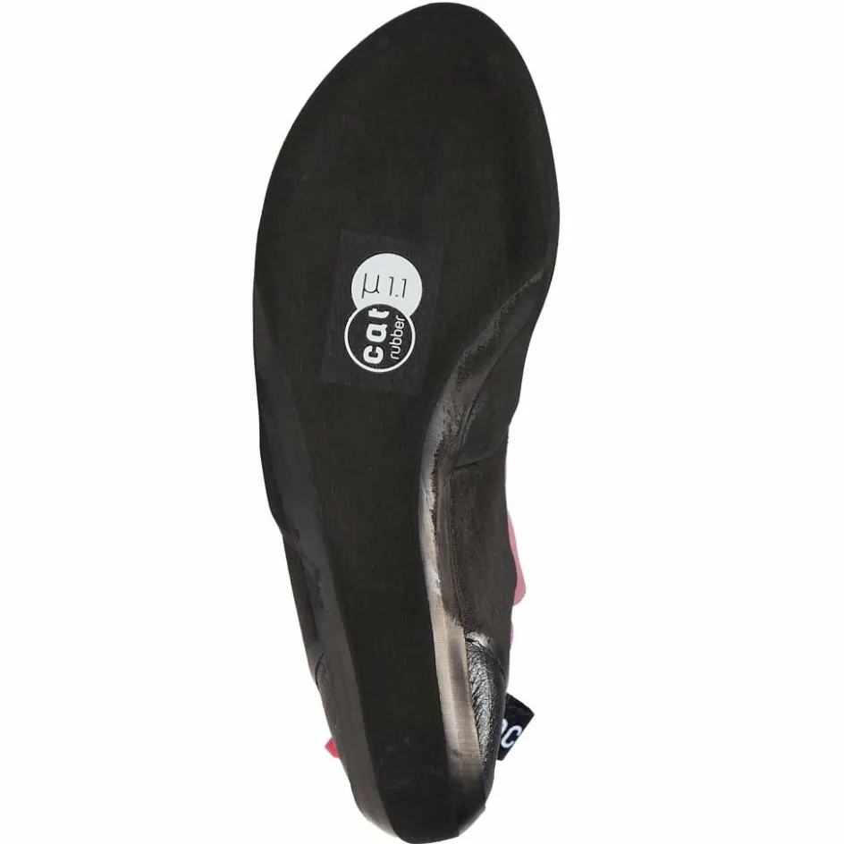Der Strike ist jedoch keinesfalls nur ein „gemütlicher Puschen“: Er sitzt sehr präzise und lässt sich durch die differenzierte Schnürung optimal anpassen. Zusammen mit der leicht asymmetrischen Leistenform wird für einen festen Halt mit Fokus auf eine ausgewogene Kraftübertragung gesorgt. Für guten Grip ist die 4,5 mm starke CAT Rubber 1.1 Gummisohle verantwortlich, die sowohl auf Kunststoff als auch Fels eine gute Reibung aufweist. Neu ist das Gummi auf den Zehen, welches dir auch den Einstieg ins Toehooken ermöglicht.