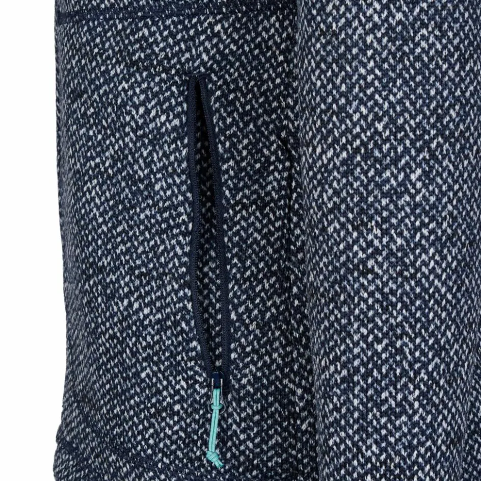 Durch das dicke und weiche Polyester-Gewebe (Materialstärke 340g/m²) genießt du in der Amy Hoody Fleecejacke wohlige Wärme bei kalten Bedingungen. Das Material ist innen weich aufgebürstet und bietet ein tolles Tragegefühl. Noch dazu verfügt das Material über ein gutes Feuchtigkeitsmanagement, sodass die Jacke im Nu wieder trocken ist, wenn es einmal aktiver zugeht. Und weil vom verwendeten Polyester ein hoher Anteil recycelt ist, überzeugt die Amy Hoody außerdem in Sachen Nachhaltigkeit.