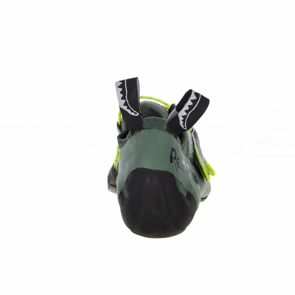 Auch der Leiste wurde komplett überarbeitet und ist jetzt mit einem etwas stärkeren Downturn versehen. Zudem hat die Zehenbox leicht an Volumen gewonnen. Die Ferse läuft relativ gerade, wodurch sich der Kletterschuh deutlich bequemer trägt. Die durchgehend konstruierte Sohle besteht aus einer hauseigenen, reibungsstarken Gummimischung, die eine sehr guten Kantenstabilität aufweist.