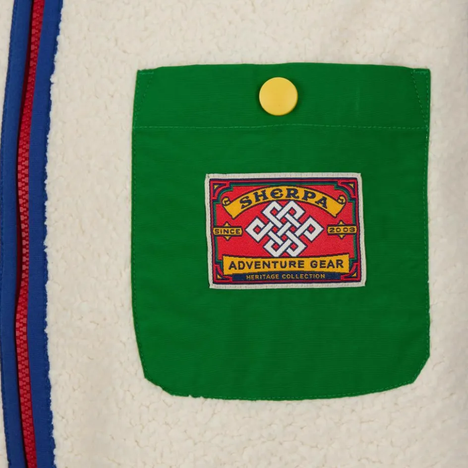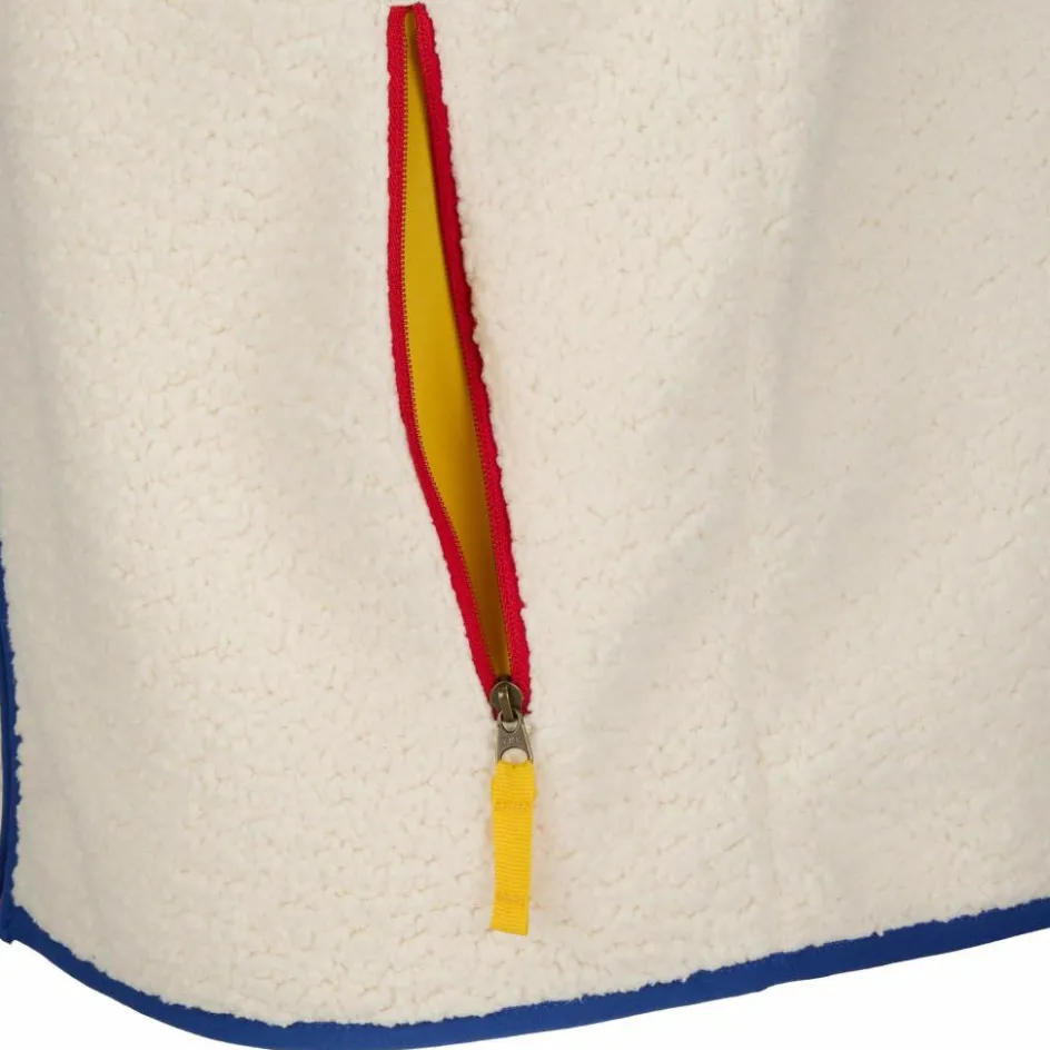 Die Tarcho Vest verdankt ihren Namen den tibetischen Gebetsfahnen, deren Farben sich auch in den bunten Applikationen der Teddyfleece-Weste wiederfinden.