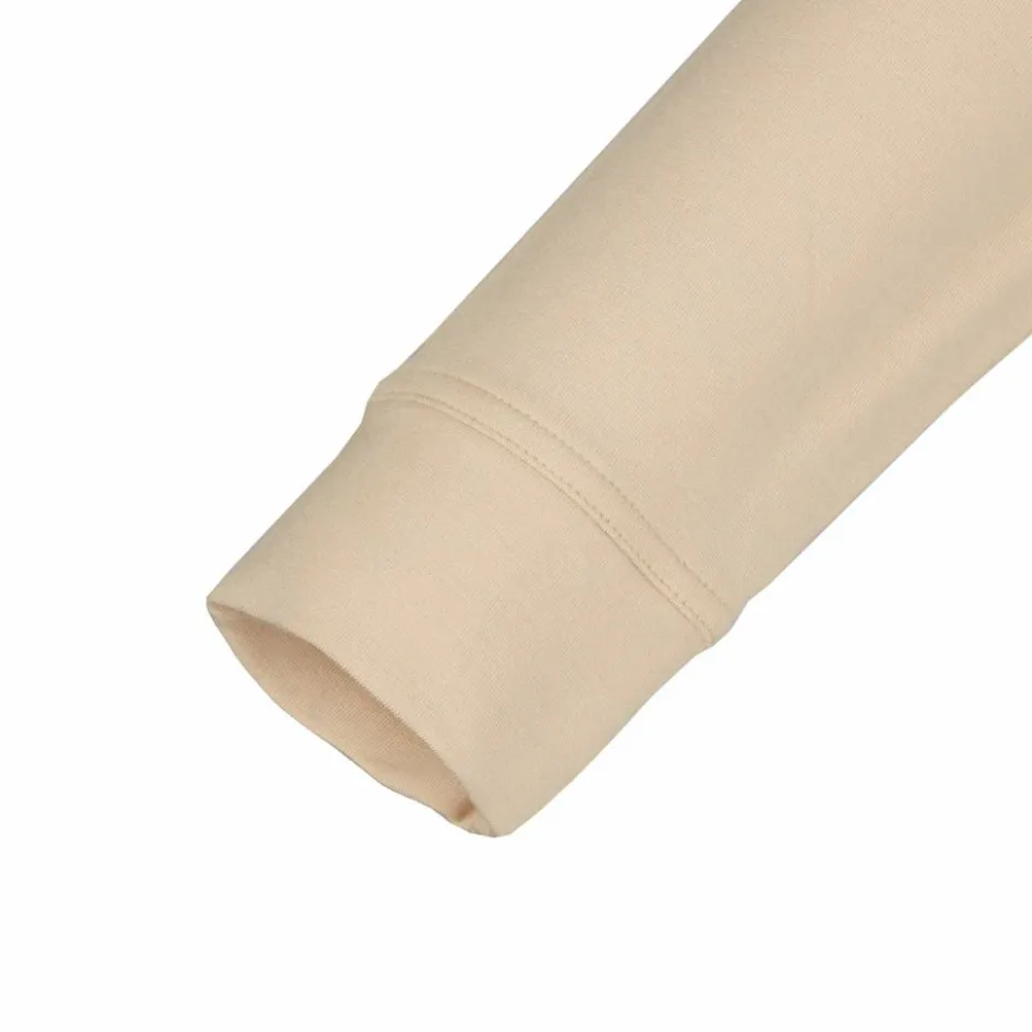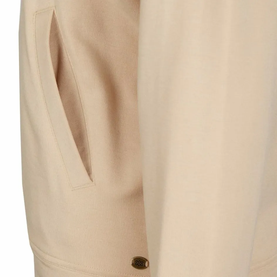 Der Pullover ist aus einer Mischung aus Polyester, Bio-Baumwolle und Lyocell hergestellt. Die Kunstfaser beschleunigt den Abtransport von Körperfeuchtigkeit und lässt den Sweater schneller wieder trocknen (im Vergleich zu einem Pullover aus reiner Baumwolle). Lyocell und Baumwolle sorgen für einen sagenhaft weichen Griff und die flauschig aufgebürstete Innenseite spendet wohlige Wärme. So trägt sich der Sweater sehr angenehm – ob beim Waldspaziergang auf dem Weg ins Yogastudio.