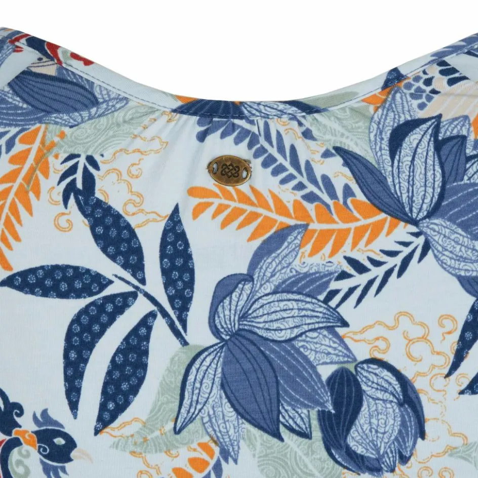 Durch seinen Materialmix aus Modal und Bio-Baumwolle hat das Kleid einen wunderbar weichen Griff und einen schönen, fließenden Fall. Der Modal-Anteil lässt das Gewebe außerdem schneller trocknen und verbessert die Strapazierfähigkeit (im Vergleich zu reiner Baumwolle). Ein Schuss Elasthan ist auch mit von der Partie und sorgt zusammen mit der leichten A-Linienform für volle Bewegungsfreiheit am Strand oder in der Stadt.