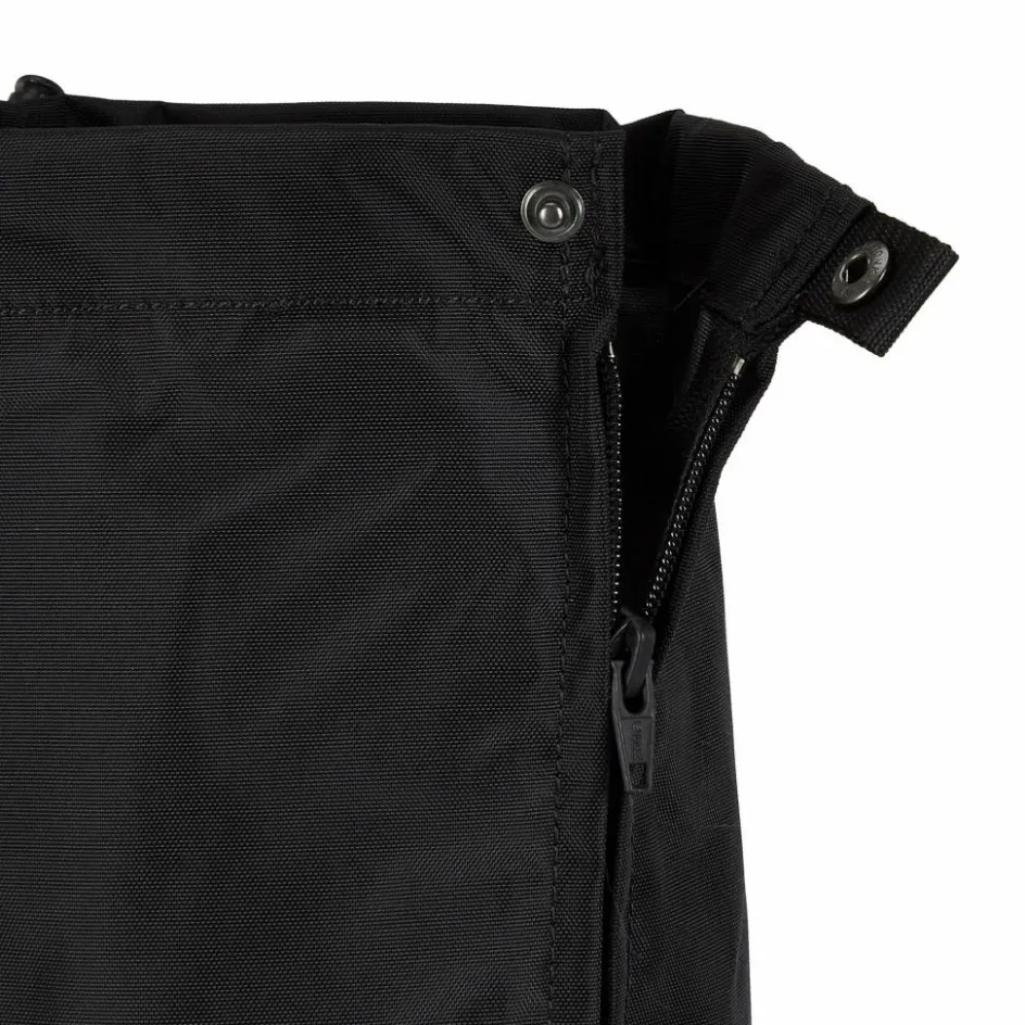 Gummizüge im Fußbereich und am Knöchel optimieren die Passform, der Schaft schließt mit einem Tanka-Verschluss ab und lässt sich in der Weite regulieren. Mit einem kräftigen, verstellbaren Riemen wird die Gamasche unter dem Schuh gehalten. Ein strapazierfähiger Metallhaken bietet die Möglichkeit, die Gamasche am Schuh zu fixieren. Geschlossen wird sie mit einem Reißverschluss. Das robuste, wasserabweisende Material schützt vor Regen, Gestrüpp und Geröll.