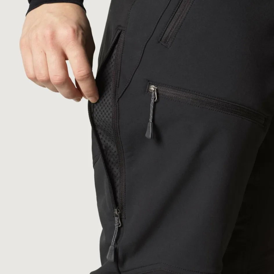 Wenn du bei einem steilen Aufstieg ins Schwitzen kommst, wirst du schnell merken, dass die Tourenhose ein tolles Feuchtigkeitsmanagement besitzt. Der robuste Stoff ist atmungsaktiv und trocknet schnell wieder. Das zeigt sich auch nach einem Regenguss. Die Softshellhose weist Wind und Wasser ab; am Gesäß, den Knien und den Beinabschlüssen ist sie zusätzlich mit einer 3-lagigen Polyamid-Verstärkung mit PU–Membran versehen. So kannst du dich auch mal auf eine nasse Oberfläche setzen und knien. Die komplette Hose ist dauerhaft wasserabweisend imprägniert (<span style="text-align: left;" data-glossar-text="PFC (perfluorierte Kohlenwasserstoffe oder Fluorcarbone genannt) sind vollständig mit Fluor substituierte Kohlenstoffverbindungen, d.h., dass sie keine Wasserstoff-Atome mehr enthalten.