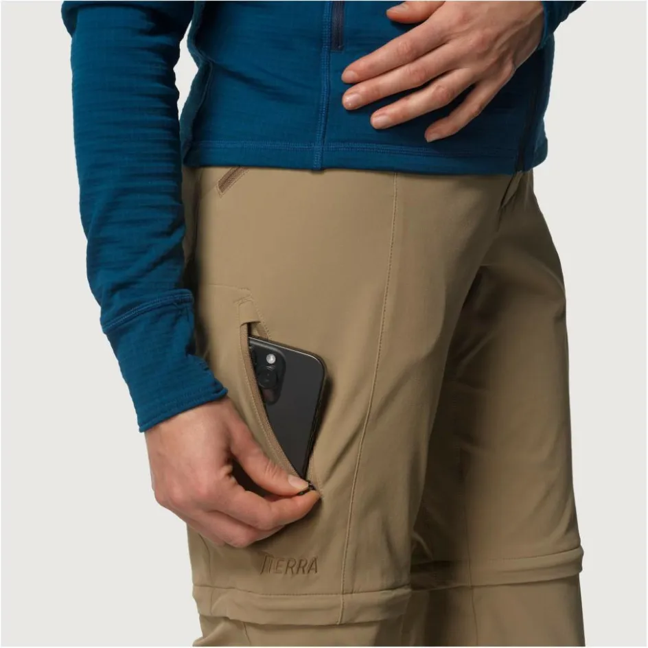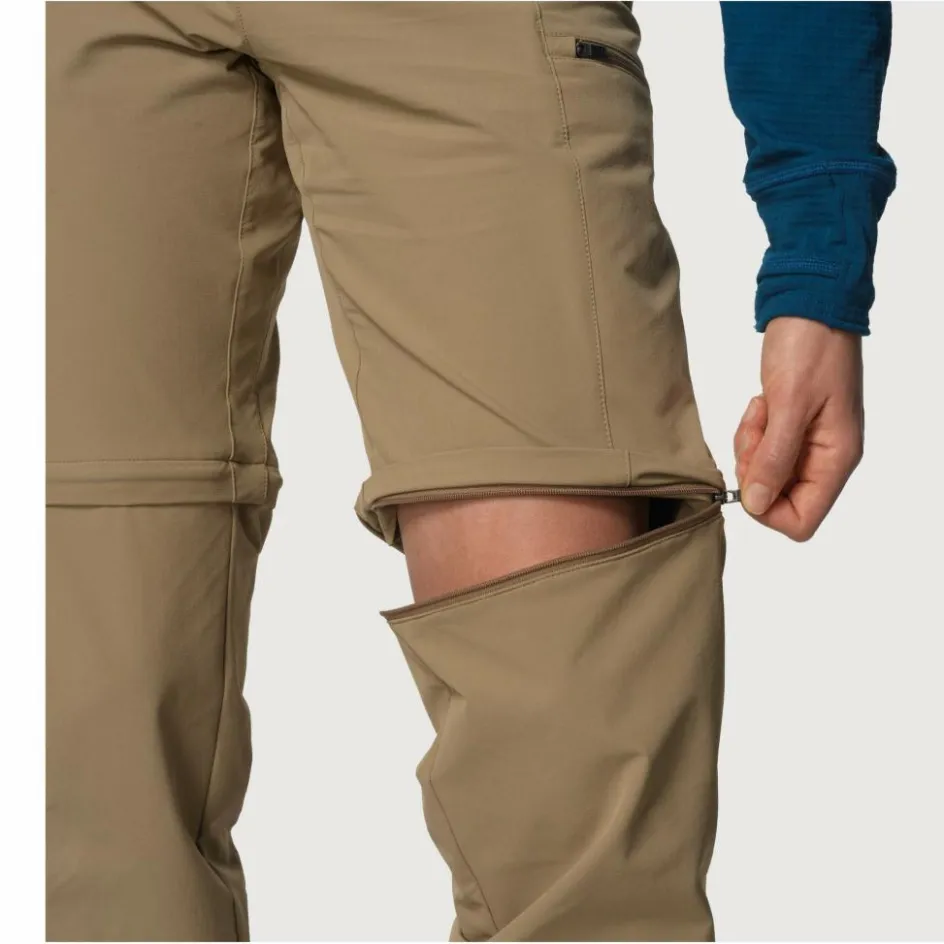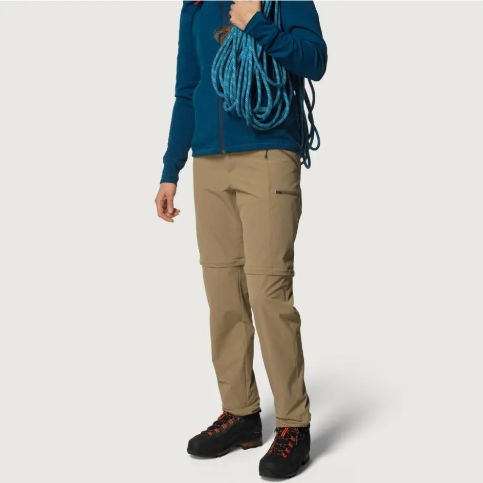 Brauchst du es etwas luftiger oder noch mehr Bewegungsfreiheit lassen sich die Beinabschlüsse im Nu abzippen und die Hose wird zur luftigen Shorts. Versehen mit integriertem Gürtel kannst du die Weite passgenau einstellen und für sicheren Halt sorgen. Die beiden RV-Seitentaschen sind so angebracht, dass sie dich mit Klettergurt nicht stören. Für noch mehr Stauraum verfügt die Hose außerdem über eine RV-Beintasche am linken Oberschenkel sowie eine Gesäßtasche. Die Beinabschlüsse kannst du ebenfalls in der Weite regulieren, damit die Pace Pant mit Trekking- oder Wanderstiefeln gut abschließt. Zudem sind sie die Beinabschlüsse mit abnehmbarem Stiefelhaken ausgestattet.