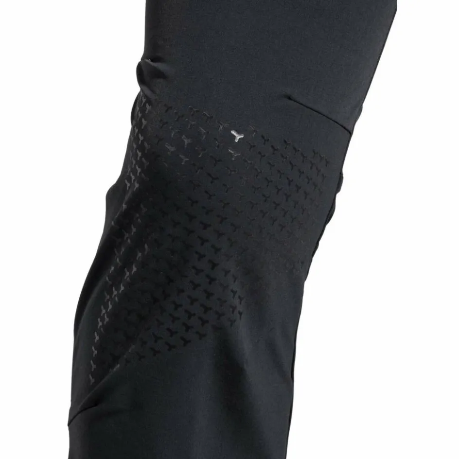 Das Hauptmaterial der Softshellhose besteht zum Großteil aus recyceltem Polyamid und dehnbarem Elasthan. Es hält also einiges aus und ist für bewegungsintensive Einsätze gemacht. Das Außenmaterial ist zudem stark windabweisend und dank des PFC-freien Eco-Finish auch wasser- und schmutzabweisend. Wechselhaftes Wetter und schlammige Wege sind somit kein Problem. Besonders beanspruchte Stellen wie Gesäß und Beinabschlüssen sind zusätzlich mit robusten Verstärkungen aus Cordura versehen, die vor Abrieb durch spitze Felsen schützen.