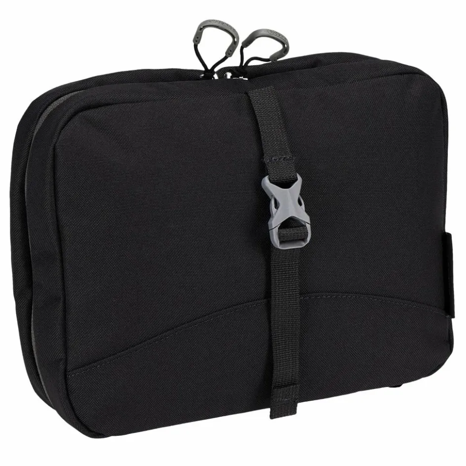 Die kompakte Kulturtasche im cleanen Design besitzt insgesamt fünf Fächer in unterschiedlichen Größen für Hygieneartikel. Das Innenmaterial lässt sich leicht reinigen, falls mal etwas ausläuft oder wenn du nach der Reise wieder Zuhause bist. Ebenfalls erwähnenswert: Das Hauptmaterial ist recycelt und mit einer PFC-freien DWR-Imprägnierung ausgerüstet.