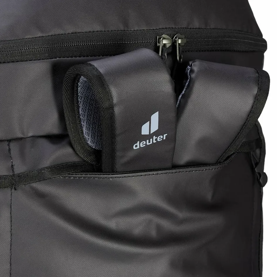 In gewohnter Deuter Manier ist auch die Duffel Pro Roller vorbildlich, was das Thema Nachhaltigkeit betrifft. Denn sie ist aus recyceltem Polyester und ohne Einsatz von PFAS hergestellt; die Rollen sind austauschbar. Zudem ist die Reisetasche bluesign-zertifiziert und klimakompensiert.