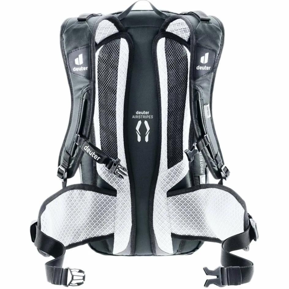 Weniger ist mehr – der gewichtsoptimierte, TÜV/GS zertifizierte Protektor-Rucksack Flyt SL ist auf die essenziellen Features reduziert. So sorgt ein leichter, herausnehmbarer Rückenprotektor für Schutz bei Stürzen. Zur Fixierung des Helms gibt es Clips außen am Rucksack (Halbschalen-Helm) oder seitliche Kompressionsriemen (Fullface-Helm). Zwei verstaubare Riemen am unteren Ende des Rucksacks ermöglichen zudem die Befestigung der Bike-Protektoren. Der speziell für Frauen verkürzte Rücken mit dem bewährten, leichten Airstripes-System sorgt zusätzlich für ausreichende, angenehme Belüftung.