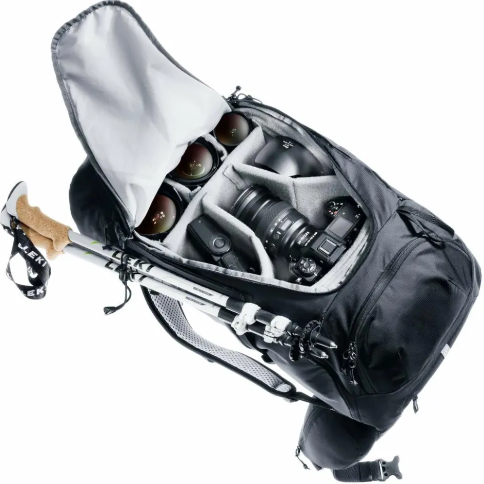 Integrierbare, rundum gepolsterte Fotoausrüstungsbox, die auch ohne Rucksack eigenständig verwendet werden kann. Sie ist speziell auf den Futura Pro Jaypack 36 mit Frontöffnung abgestimmt, modular und individuell mit unterschiedlich großen, gepolsterten Klett-Trennwänden bestückbar und schützt so das Equipment zuverlässig vor Schmutz und Stößen. Das gepolsterte Reißverschlussfach ermöglicht einen schnellen Frontzugriff auf das Hauptfach in dem Platz für eine DSLR mit aufgesetztem Objektiv und bis zu vier weiteren Objektiven oder Zubehör ist.