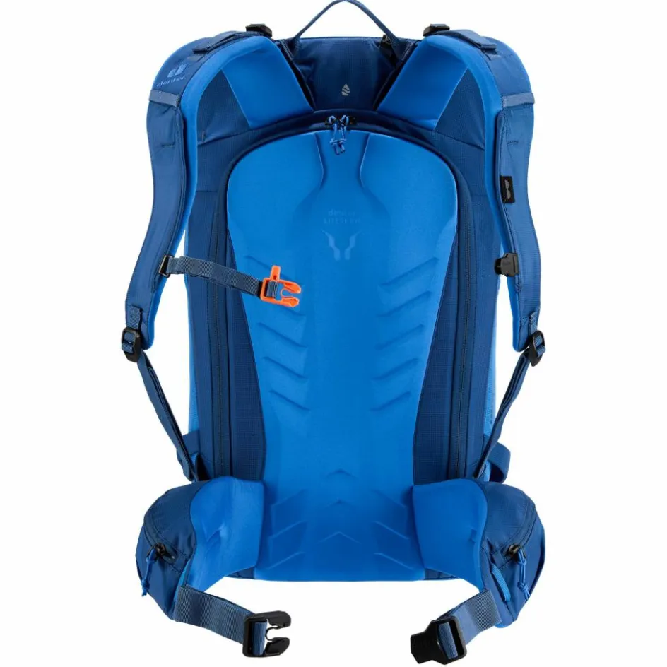 Auch das Thema Sicherheit wird beim Freerider großgeschrieben. Mit dem separaten und schnell zugänglichen Sicherheitsfach für Sonde und Schaufel hält der Touren-Rucksack das Wichtigste im Notfall griffbereit. Neu ist auch das variable Fixierungssystem. Mit zwei separaten Riemen können Skier, Snowboard und Schneeschuhe im Handumdrehen außen am Rucksack befestigt werden: Skier diagonal oder in A-Form, Snowboard und Schneeschuhe vertikal. Außerdem dienen die flexibel einsetzbaren Befestigungsriemen zur seitlichen Kompression.
