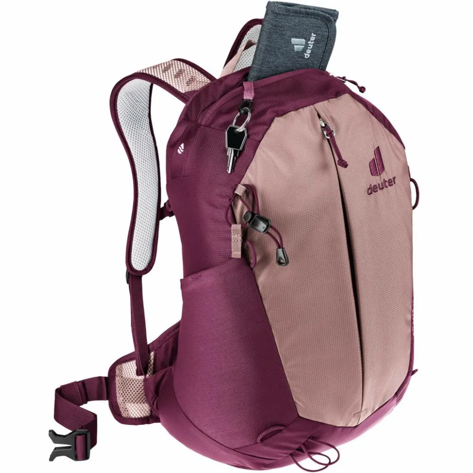 Der Rucksack für sportliche Tagesausflüglerinnen mit federleichtem, maximal belüftetem Aircomfort-Rückensystem bietet nicht nur eine sehr gute Gewicht-Komfort-Ratio, sondern besitzt auch eine geräumige Reißverschluss-Frontöffnung. So hat man schnell und mühelos Zugriff auf das Hauptfach. Die integrierte Reißverschluss-Garage sichert den Inhalt zusätzlich vor unfreiwilligen Zugriffen. Weitere Verstaumöglichkeiten bieten die Smartphone-Tasche und die Schlaufen zur Befestigung von Gegenständen am Rucksack.
