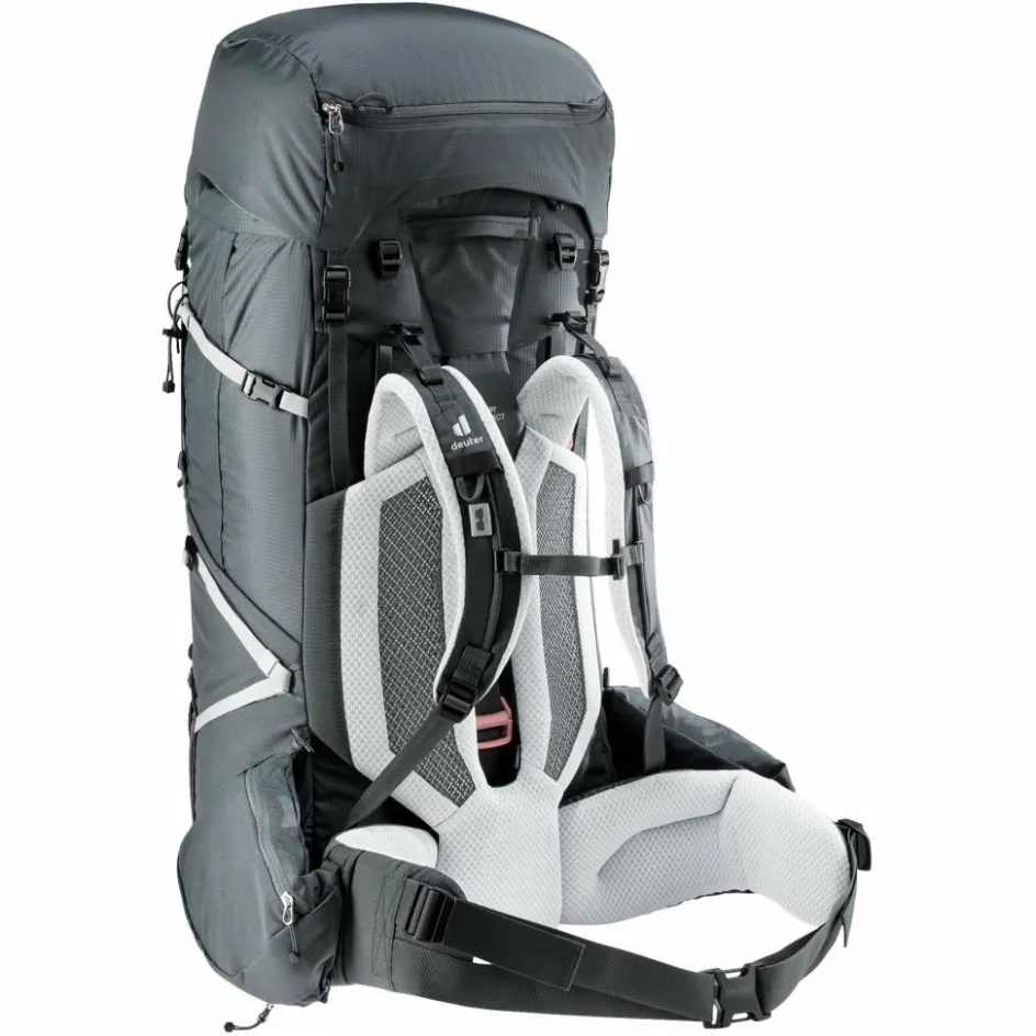 Die verschiedenen Volumengrößen der Rucksäcke sind durch das Aircontact-Rückensystem mit austauschbaren und flexibel konfigurierbaren VariFlex-Hüftflossen und ActiveFit-Schulterträger, sowie durch die verstellbare Rückenlänge des VariSlide-Systems auf die individuelle Anatomie des Trägers optimierbar und dank der Lastübertragung durch den stabilen Aluminium-Y-Rahmen und dem Lumbal-Pad mit großflächigem Abstandsgewirke (Air Spacer Mesh) sehr angenehm zu tragen.