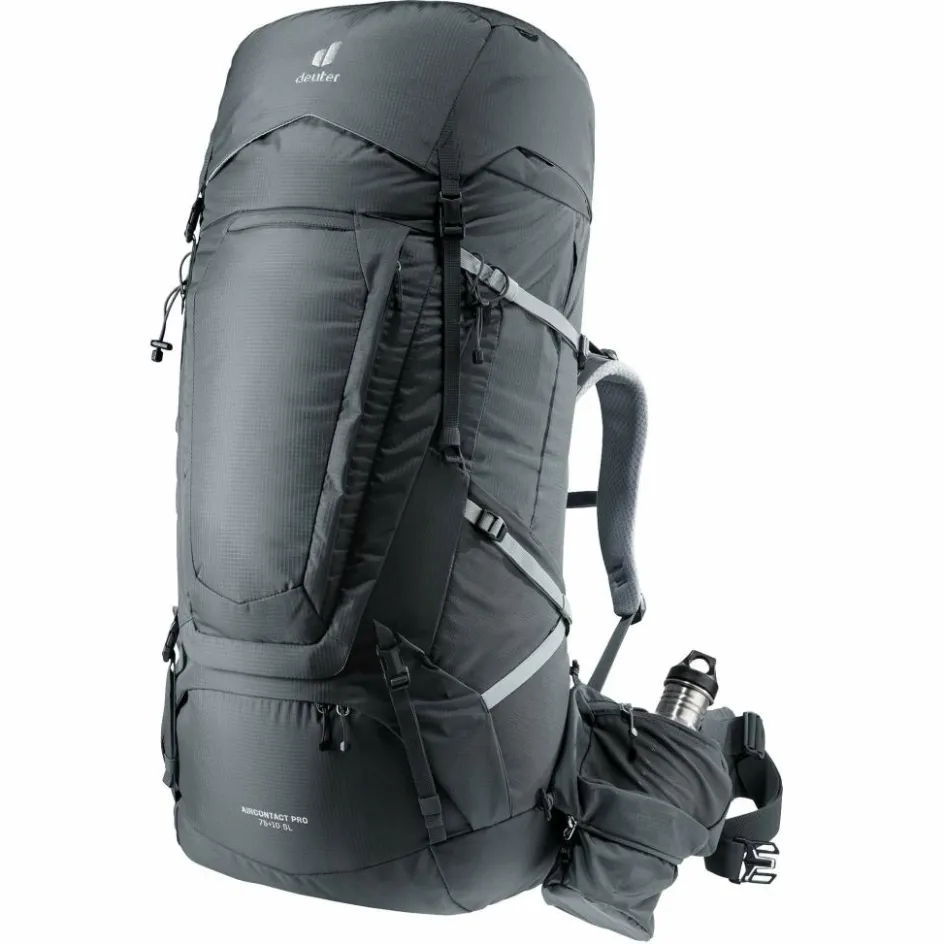 Viele verschiedene Innenfächer bieten eine praktische Organisation der Ausrüstung. Und auch außen bieten Taschen mehr Volumen und Ordnung für alles, was schnell griffbereit sein soll. Unter anderem sogar für Zeltgestänge. Auch die geräumigen, abnehmbaren Hüftflossentaschen ermöglichen mehr Stauraum – hier findet sogar eine 1,5 L Trinkflasche in einer zusätzlich ausklappbaren Tasche Platz. Der schnelle Zugriff über die Frontöffnung und das geräumige Bodenfach erleichtert das Handling. Der abnehmbare Deckel kann mit den zusätzlichen Schulterträgern im Handumdrehen zum Daypack umfunktioniert werden.