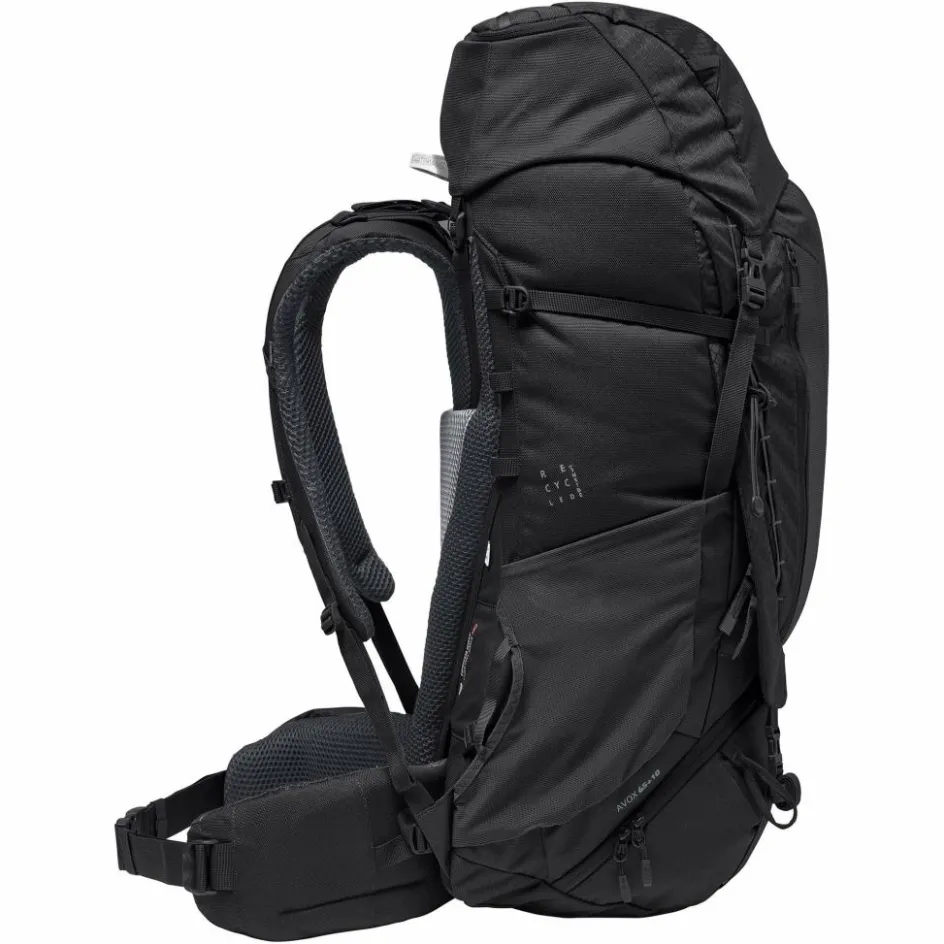 Für idealen Tragekomfort ist der Avox 65+10 mit Vaudes Tergolight Comfort Space Pro Tragesystem ausgestattet. Dieses lässt dich zum einen die Rückenlänge individuell einstellen, sodass der Trekkingrucksack passgenau sitzt und sich auch bei größerem Gewicht bequem trägt. Für noch mehr Komfort befindet sich auf Hüfthöhe eine Aussparung, die das Iliosakralgelenk und dadurch den unteren Rücken entlastet – an langen Tagen mit schwerem Gepäck ein großer Vorteil. Die ergonomisch geformten Schultergurte geben dir die Bewegungsfreiheit, die du in unwegsamerem Gelände brauchst, und der weich gepolsterte Hüftgurt sorgt für eine ideale Lastenübertragung.