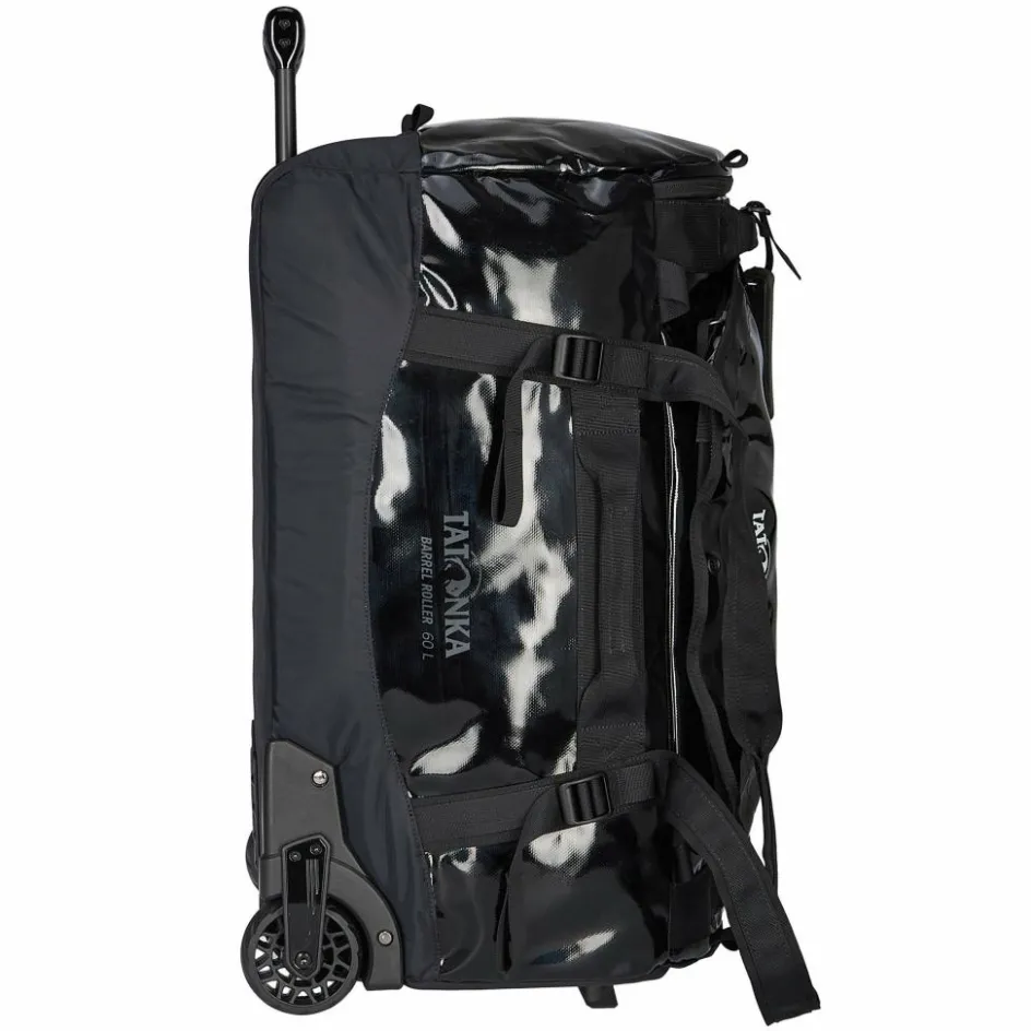 Die Barrel Roller 60 kommt in der Neuauflage ohne umweltschädliches PFAS aus. Dank TPU–Beschichtung ist der Inhalt dennoch bestens vor Feuchtigkeit geschützt. Auch in puncto Design hat sich das Obermaterial weiterentwickelt und besticht jetzt mit einer schicken Hochglanzoptik. Ebenfalls neu: Die abnehmbaren Schultergurte lassen sich dank mehrerer Befestigungsschlaufen flexibel umpositionieren und als Tragegurt nutzen. Zwei zusätzliche Tragegriffe an den Seiten (insgesamt vier) erleichtern zudem die Handhabung. Und damit die großvolumige Reisetasche mit Rollen auch bei geringerer Beladung formstabil bleibt, lässt sie sich mithilfe seitlicher Riemen einfach komprimieren.