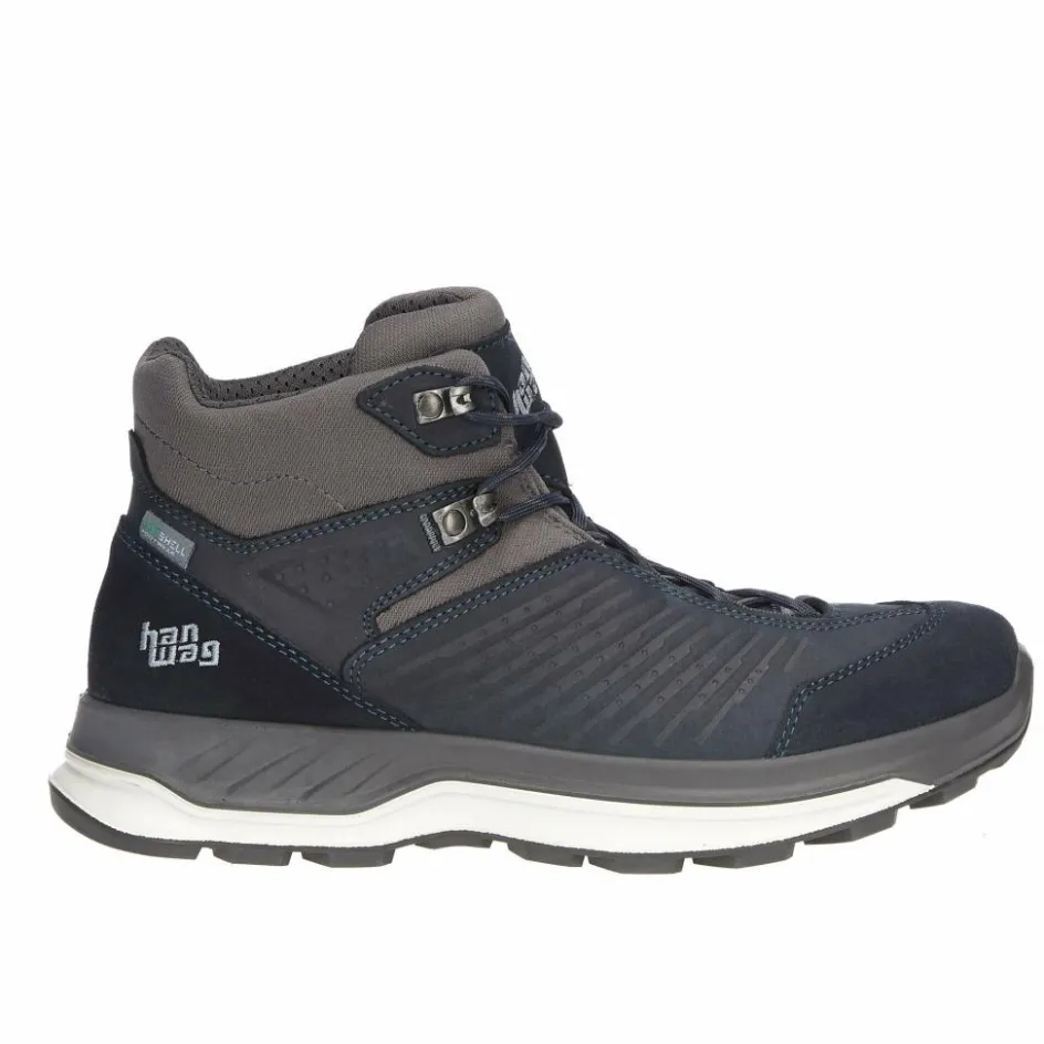 Ein weiteres wichtiges, wenn nicht das wichtigste Element des Stiefels ist die Sohlenkonstruktion. Zum einen wäre da die Zwischensohle aus unterschiedlich stark dämpfenden PU-Keilen. Sie wirkt stark stoßabsorbierend und unterstützt die Abrollbewegung beim Wandern. Zum anderen ist da die besonders griffig gestaltete Hanwag Fiberbrake Gummi-Profilsohle.