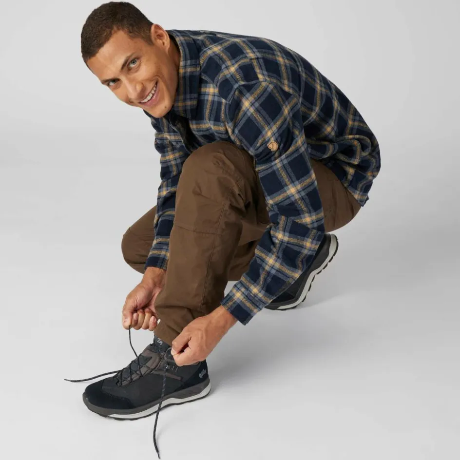 Als Obermaterial wurde auf Velours, Nubukleder und synthetisches Material zurückgegriffen. So entsteht ein klassischer „Wanderstiefel-Look“, dennoch ist der Stiefel nicht zu schwer, wodurch er sich bestens für alltägliche Unternehmungen eignet. Der Winterstiefel ist außerdem mit einer besonders nachhaltigen EcoShell-Membran ausgestattet. Diese kommt ohne den Einsatz von Fluorchemikalien aus und wird auf PU-Basis hergestellt.