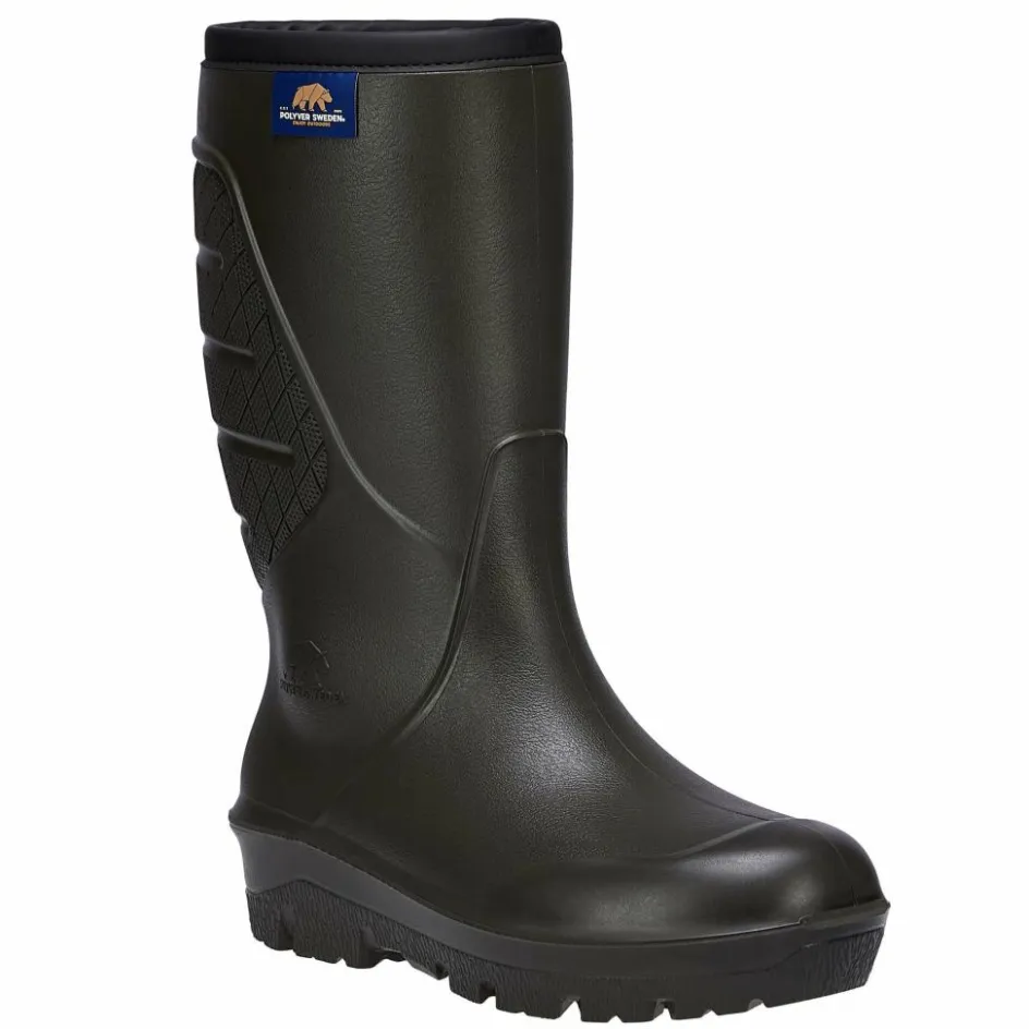 Der Classic Winter High von Polyver ist ein gefütterter Gummistiefel, der zuverlässigen Nässeschutz mit angenehmer Wärme verbindet. Der hohe Schaft hält dir die Elemente zuverlässig von den Füßen. Die spezielle Konstruktion des Obermaterials mit eingekapselten Luftblasen sorgt dafür, dass der Stiefel hervorragend isoliert und gleichzeitig leicht ist. Das kuschelige Synthetikfutter verstärkt den Wärmeeffekt. Auf rutschigen Oberflächen bietet die griffige Sohle Halt. Kurzum: Ein robuster, funktionaler Stiefel für Winterwanderungen im Wald oder Spaziergänge am Seeufer.
