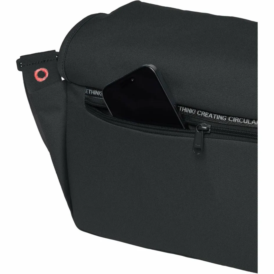 Die Coreway Messenger 6 ist mit ihren sechs Litern Volumen eine kompakte und praktische Umhängetasche für den Alltag. Sie besteht aus recyceltem Hauptmaterial und hat eine clevere Innenaufteilung. Wichtige Gegenstände wie Portemonnaie und Schlüssel sind im RV-Hauptfach sicher verstaut. Für schnellen Zugriff gibt es offene Fächer an der Vorderseite, ideal für Taschentücher oder Snacks. Hinten befindet sich ein weiteres Reißverschlussfach, das sich gut für Smartphone oder Schlüssel eignet. Der Schultergurt lässt sich einfach und individuell verstellen. Die Coreway Messenger 6 besteht fast vollständig aus PET-Polyester. Die orangefarbene Markierung bedeutet, dass der betroffene Teil aus einem anderen Material besteht. Um am Produktlebensende ein sortenreines textiles Recycling zu ermöglichen, kann der Teil mit der Markierung einfach abgenommen werden. Die Umhängetasche ist mit einer PFC-freien DWR-Imprägnierung wasser- und schmutzabweisend ausgerüstet.