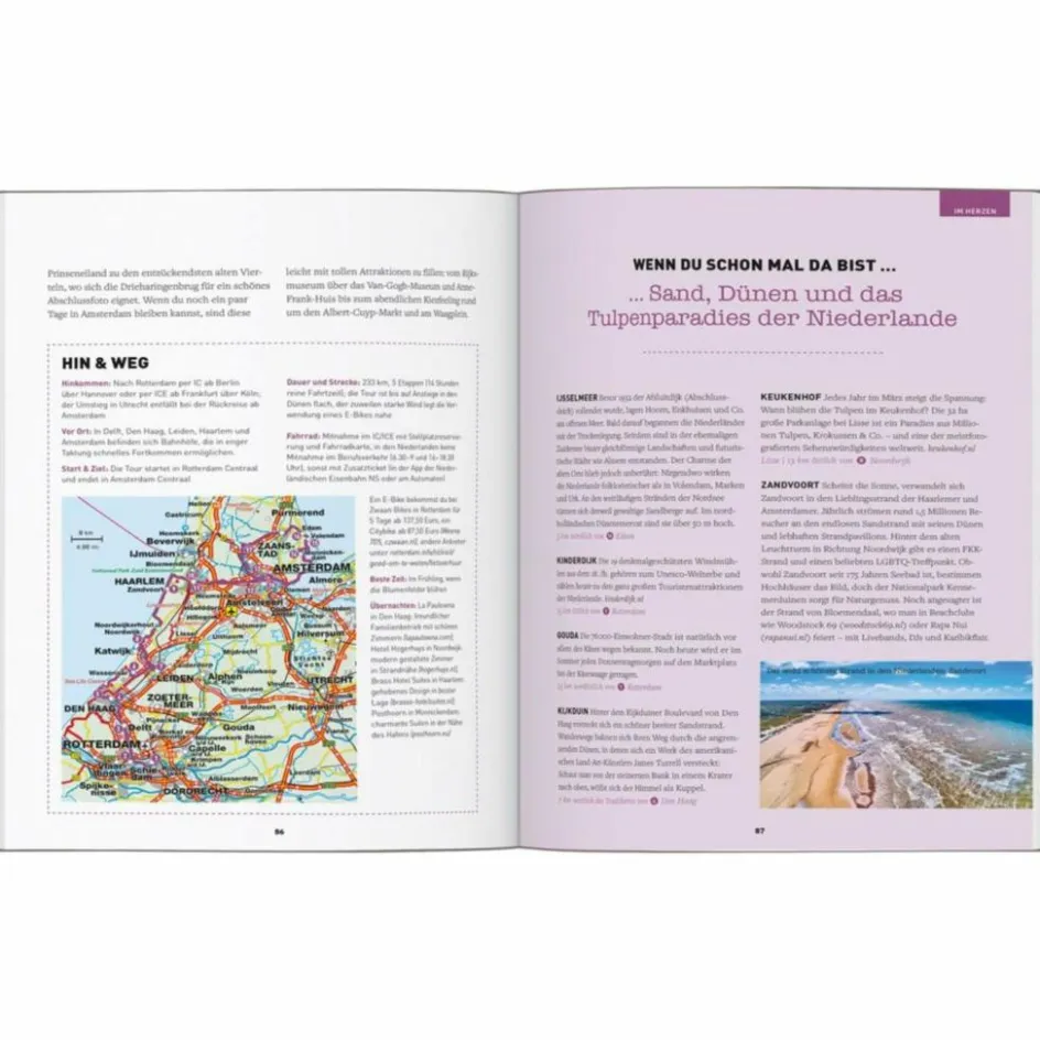 Dank detaillierter Karten, besonderer Tipps für Übernachtungen, die wichtigsten Sehenswürdigkeiten unterwegs und Erlebnisse vor Ort ist für eine unvergessliche Reise alles vorbereitet. Ob durch Natur oder kleine Städtchen, am Wasser entlang oder über Hügellandschaften – hier finden Genussradler die perfekte Entschleunigung.