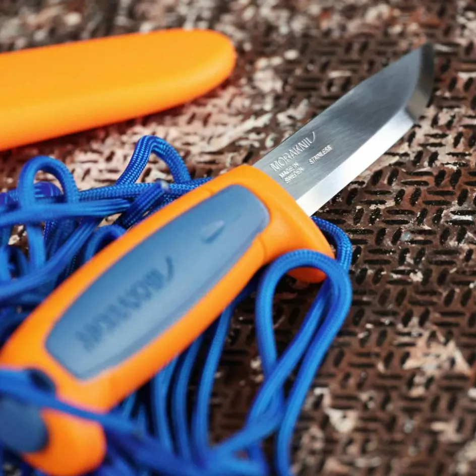 Diese Sonderedition fällt ins Auge. Die Farbgebung ist auffällig und lässt sich in der Natur oder in den Tiefen des Rucksacks schnell wiederfinden. Der Griff aus Polypropylen wird durch eine Klinge aus rostfreiem Sandvik-Stahl ergänzt. Dieser benötigt weniger Pflege als die Kohlenstoffstähle von Mora, lässt sich jedoch ebenso mühelos und sehr scharf schleifen.
