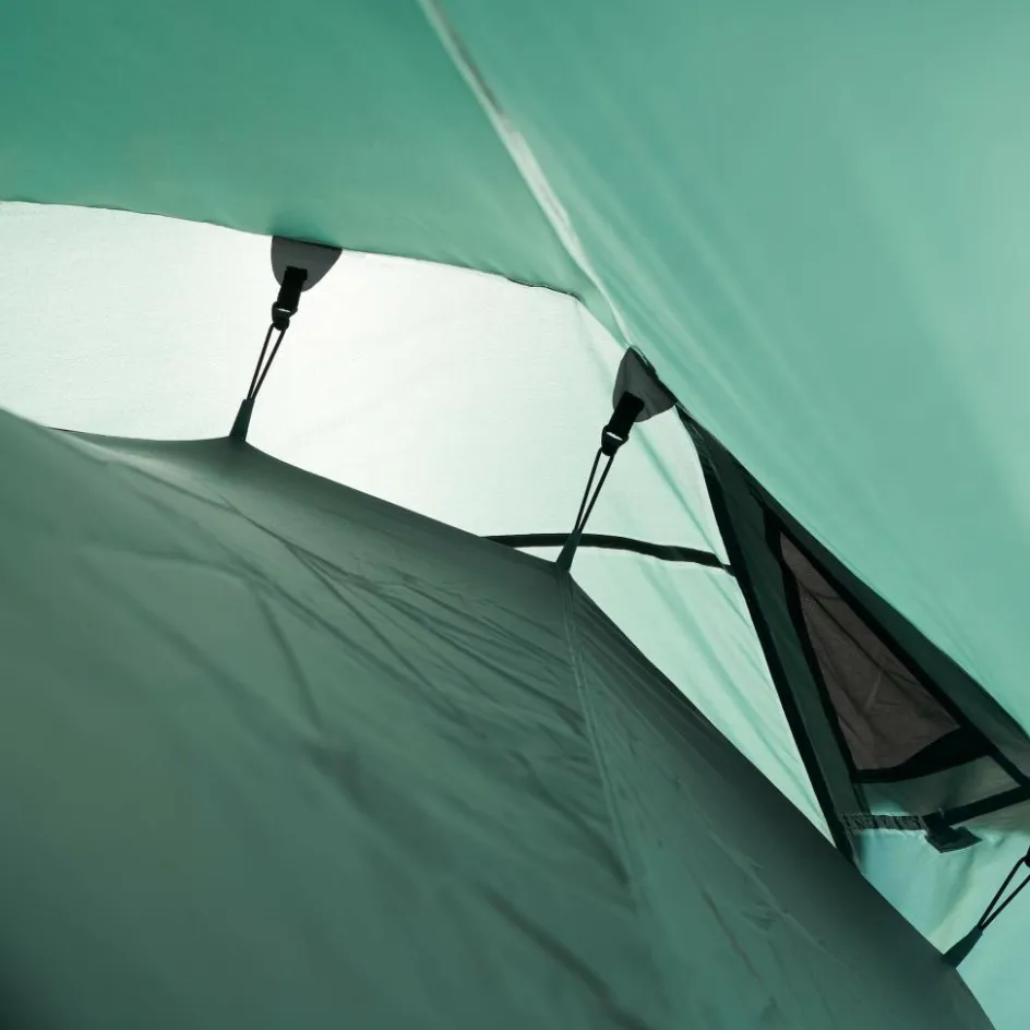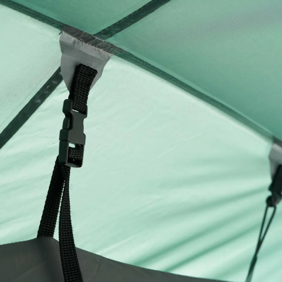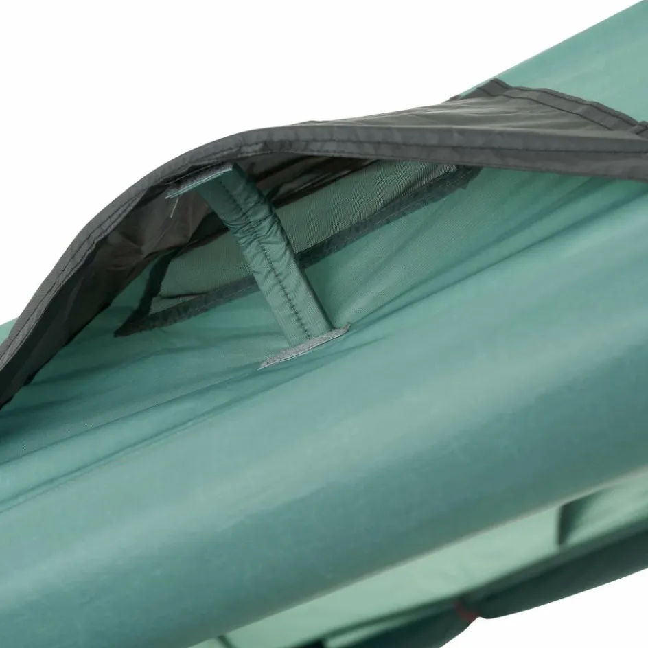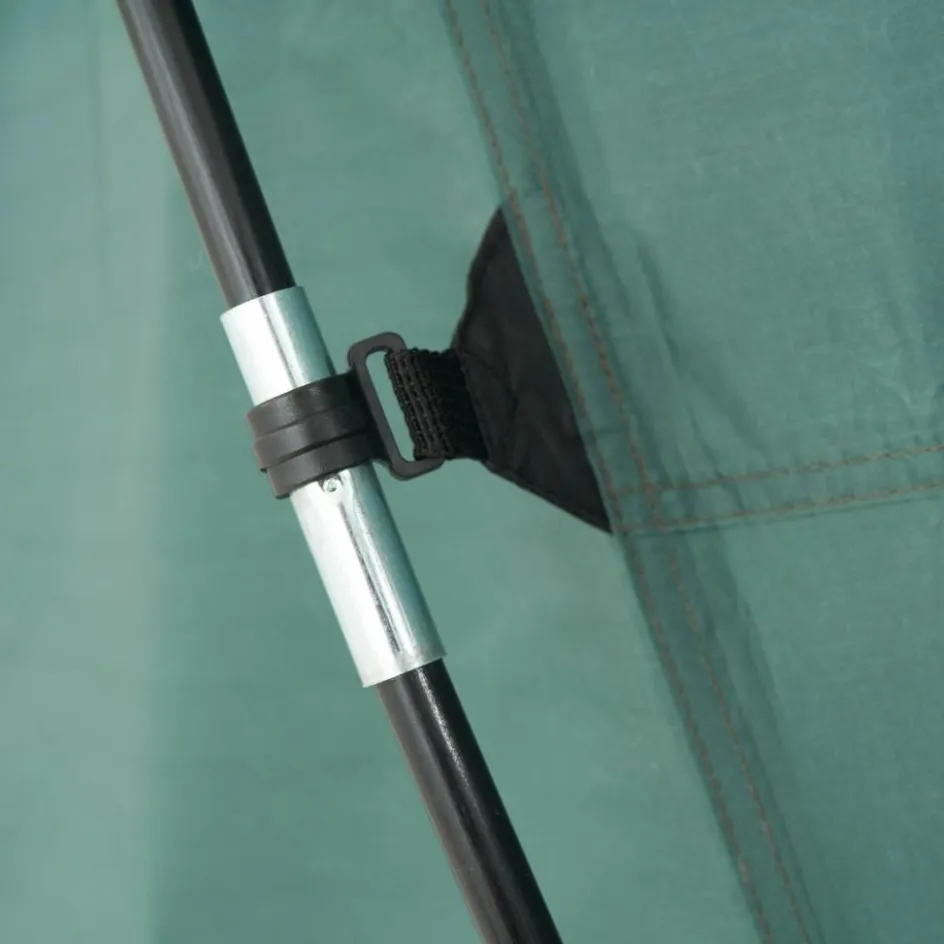 Werden beide Innenzelte ausgehängt, kann das verbleibende Überzelt als Zelt für z. B. Gartenpartys dienen. Vier Eingänge, die teilweise hochgestellt werden können, bieten nicht nur eine gute Aussicht, sondern mit den acht weiteren Lüftern auch eine optimale Raumbelüftung. Die Fenster stellen jedoch auch bei geschlossenen Eingängen eine gute Sicht nach draußen bereit.