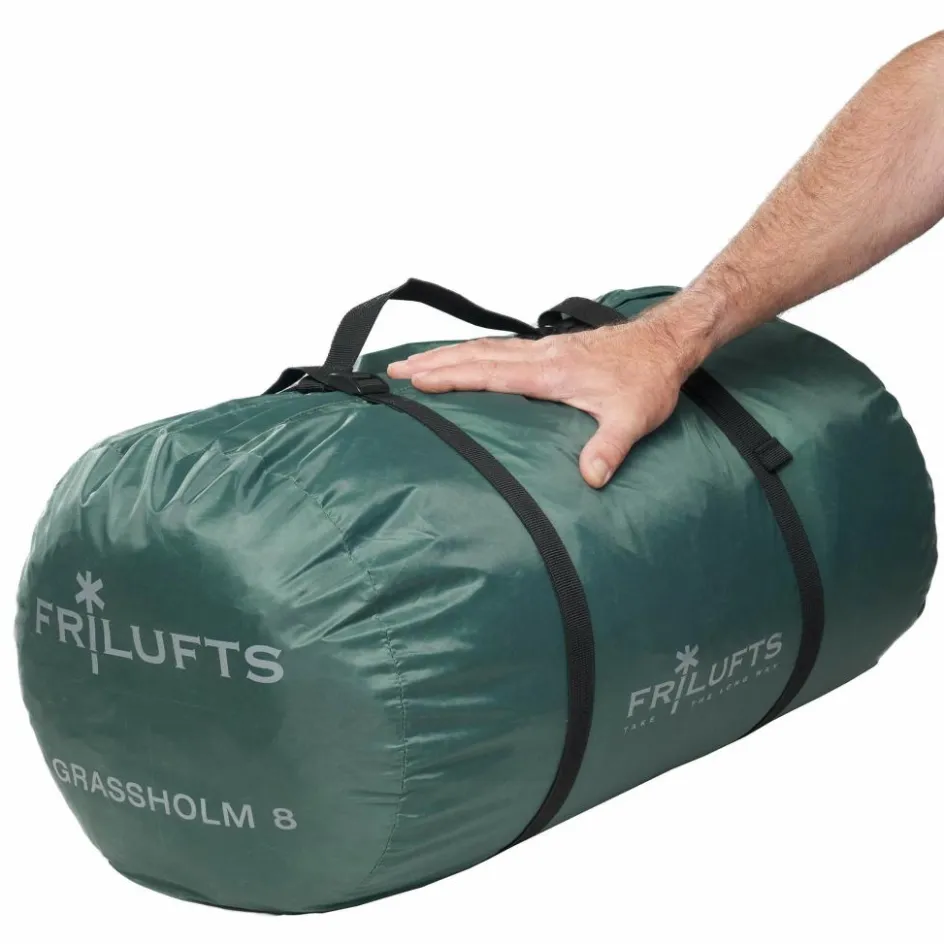Das Grassholm 8 bietet Platz für große Familien. Trotz der Größe lässt es sich zu zweit gut aufbauen. Alle Gestängebögen und Kanäle sind farblich gekennzeichnet, was den Aufbau vereinfacht. Die beiden Innenzelte können für den Auf- und Abbau im Innenzelt verbleiben. So werden sie auch beim Aufstellen im Regen nicht nass.