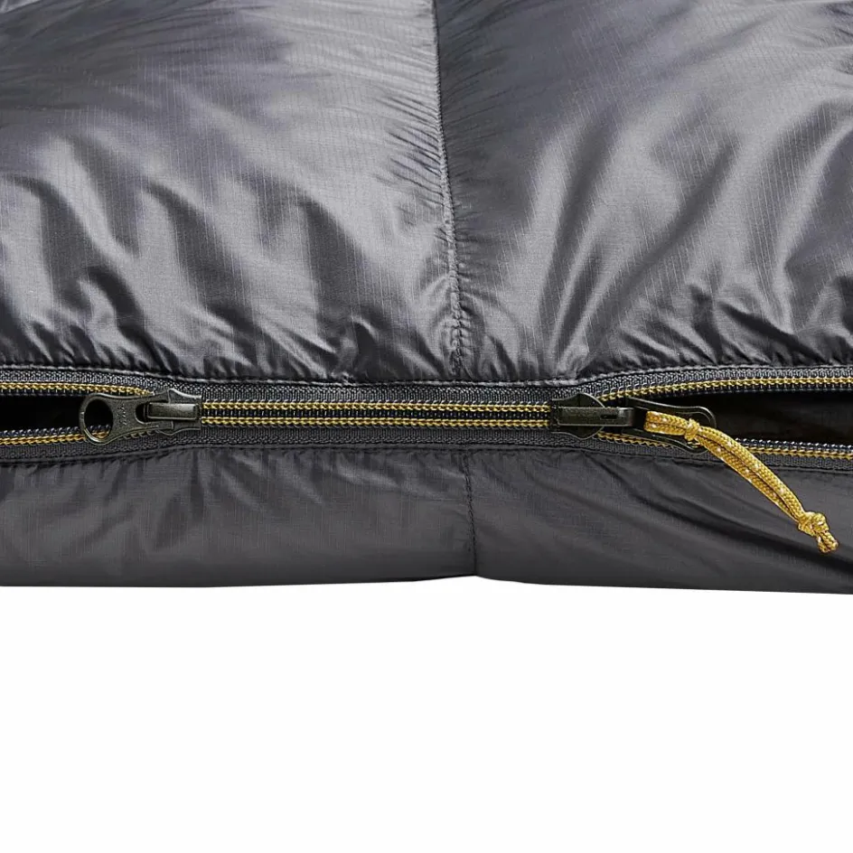 Zahlreiche Details machen Mountain Equipments Schlafsäcke unverwechselbar. Angefangen bei den haptisch unterscheidbaren Schnürzügen an der Kapuze, damit du in der Nacht weißt, ob du den oberen Teil der Kapuze (runde Kordel) oder den Kinnbereich (flache Kordel) zuziehst. Am Wärmekragen setzt Mountain Equipment auf einen Fidlock Magnetverschluss. Es entfällt damit das Herumnesteln an Druckknöpfen. Einfach den Verschluss übereinanderführen, um ihn zu schließen und an der Lasche ziehen, um ihn wieder zu öffnen.