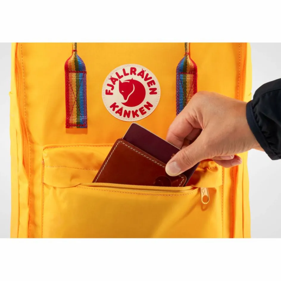 Ganz wie das Original besteht der Kanken Rainbow aus wasserabweisendem Vinylon F. Das Gewebe quillt bei Kontakt mit Feuchtigkeit auf und macht es wasserundurchlässig. Eine Schutzeigenschaft, die ein ganzes Kanken-Leben lang hält.