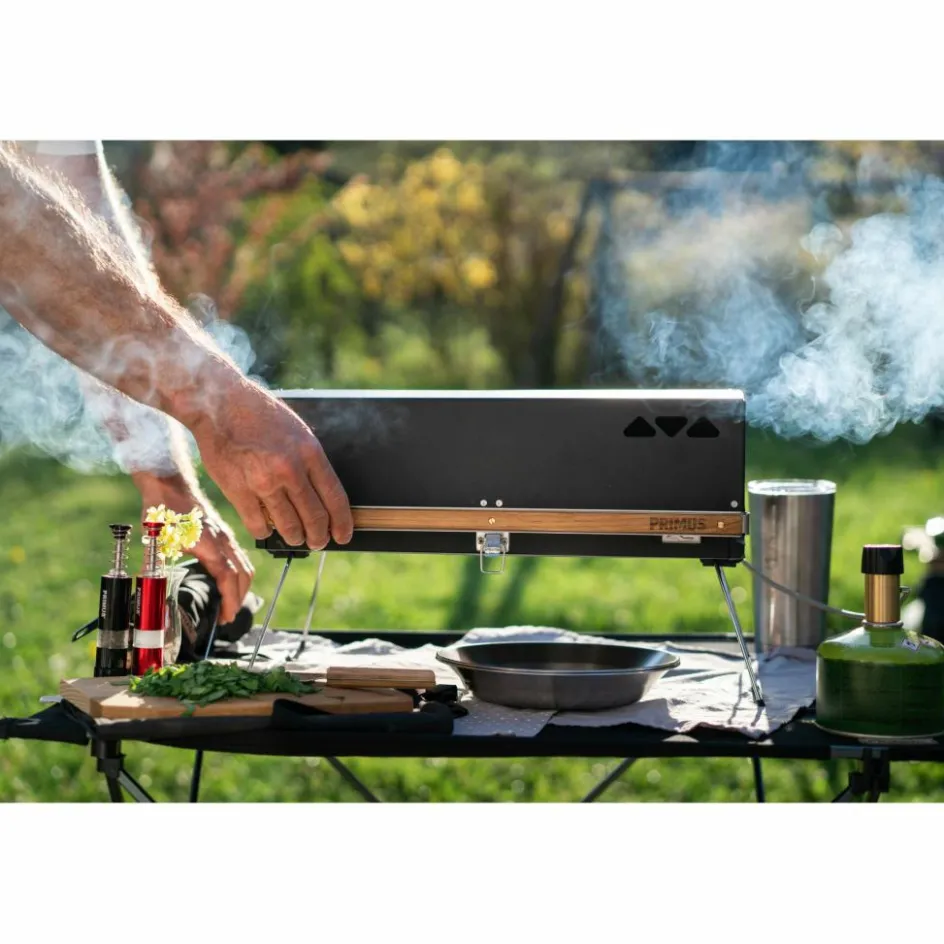 Für den Park, die Wohnmobilreise oder zuhause auf dem Balkon. Der hochwertig verarbeitete Gasgrill von Primus, mit antihaftbeschichtetem Grillrost, ist ein echter Alleskönner.