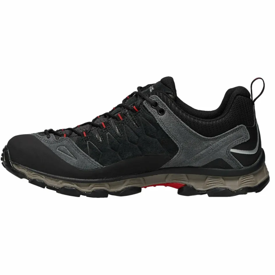 Von der Funktionalität einmal ganz zu schweigen. Der sportliche Halbschuh besteht zum Großteil aus Veloursleder, das an entscheidenden Stellen, wie Schuhzunge und Knöchelbereich mit flexiblem Mesh-Gewebe unterstützt wird.