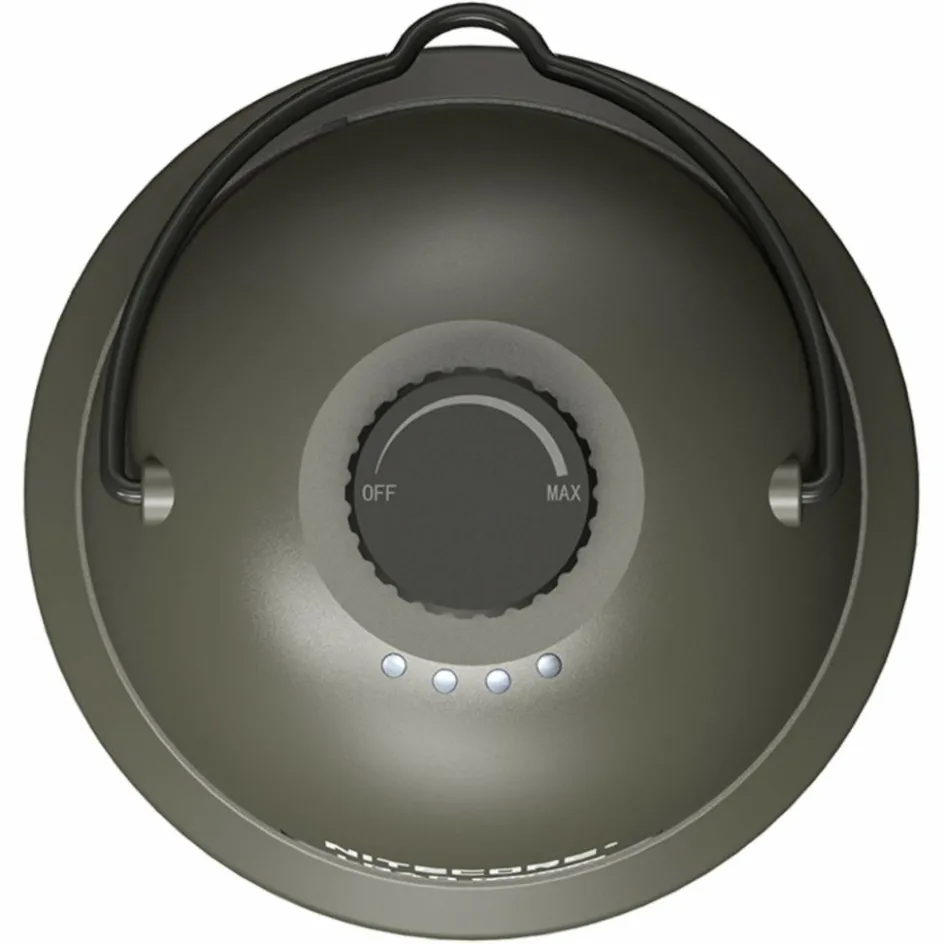 Der fest verbaute Li-Ion-Akku besitzt eine Kapazität von 4.000 mAh und versorgt die Lampe mit bis mindestens 8 Stunden und maximal 65 Stunden mit Strom. Die Zeit ist abhängig von der gewählten Helligkeitseinstellung, die du stufenlos über den Drehregler auf der Gehäuseoberseite vornehmen kannst. Eine Akkustandanzeige, bestehend aus vier LEDs gibt dir jederzeit einen Überblick über die verbleibende Akkukapazität (jede LED steht für 25 % Ladezustand).