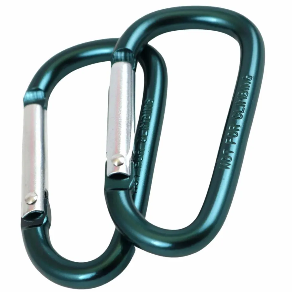 Nur zum Sichern von Personen oder zum Aufhängen einer Hängematte eignen sich diese Aluminiumkarabiner nicht!