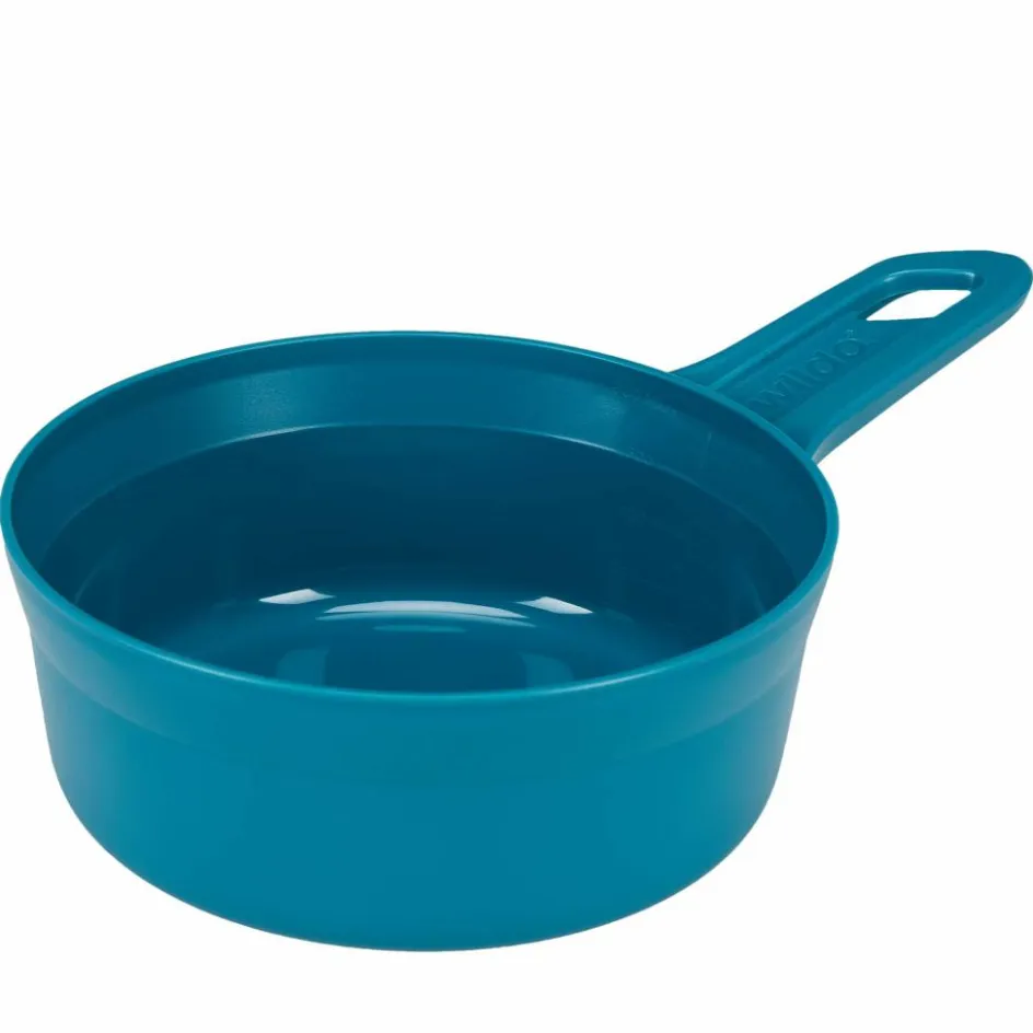 Durch das Loch im Griff kannst du die Kunststoffschale mit einem Karabiner am Rucksack befestigen.