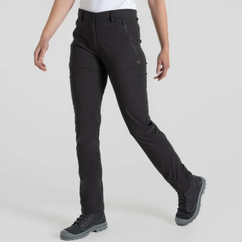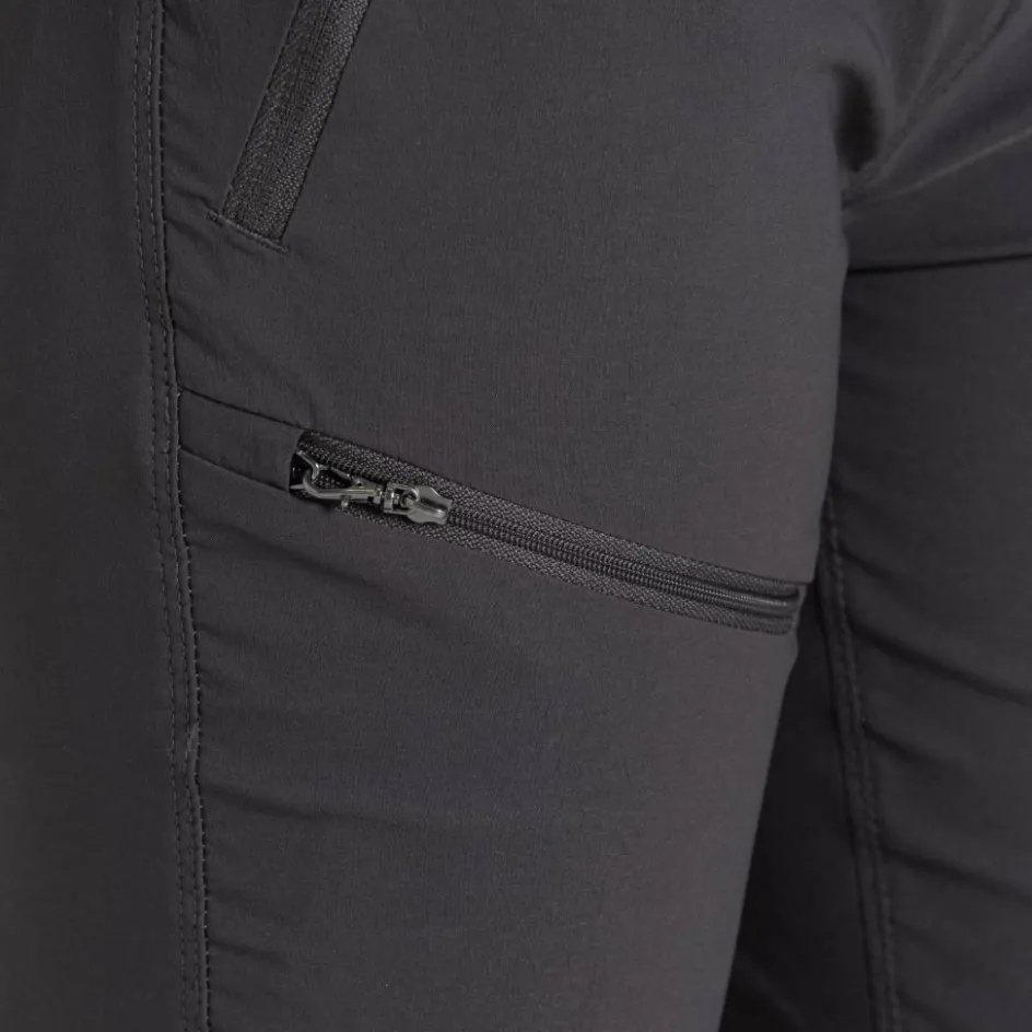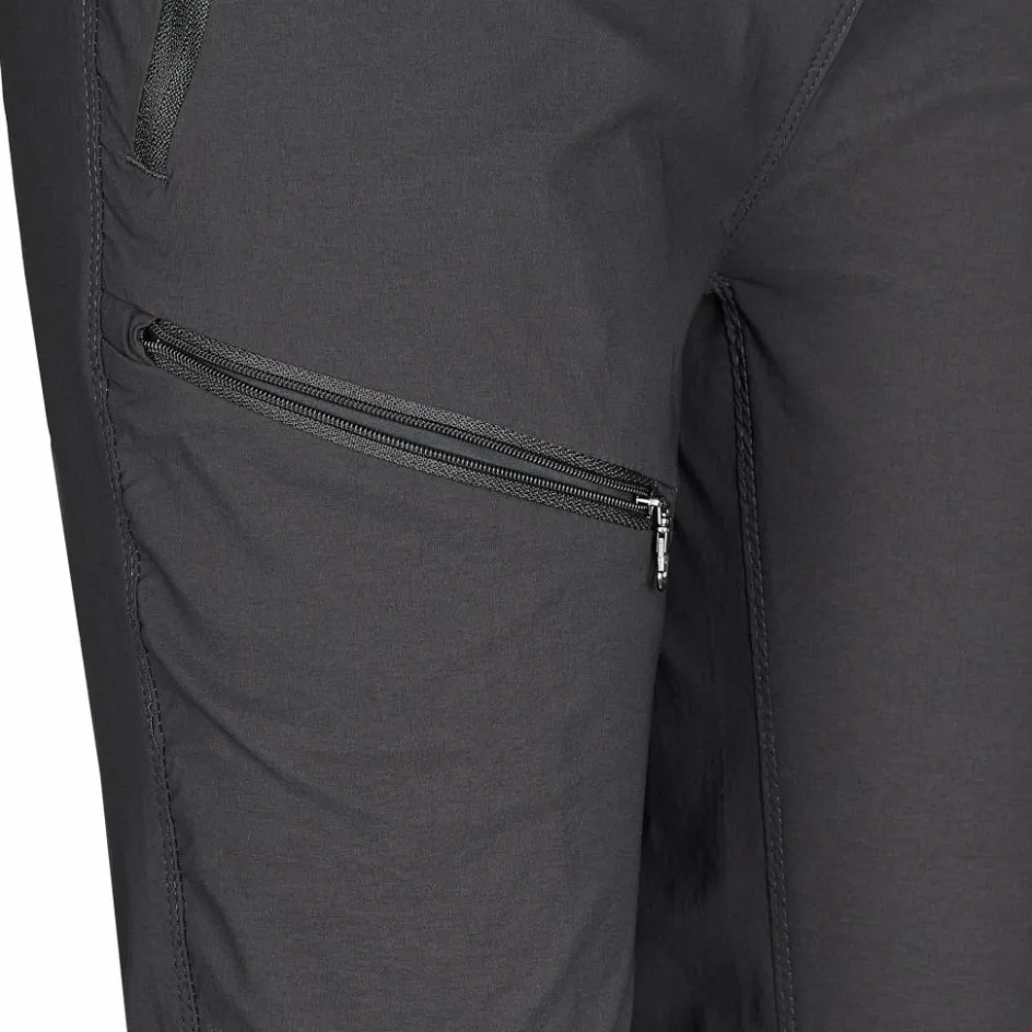 Die leichte Hose ist mit einigen hilfreichen Kleinigkeiten ausgestattet. Der einstellbare Hosenbund ist mit einem feuchtigkeitsleitenden Band versehen, welches dir bei heißen Temperaturen zur Seite steht. Auch die Beinabschlüsse lassen sich regulieren, um Insekten wenig Möglichkeiten zu bieten. Zusätzlich befindet sich im Inneren ein Abriebschutz, der eine schnelle Abnutzung durch deine Wanderstiefel verhindert. Stauraum wird dir in einigen Taschen geboten. Eine von ihnen lässt sich mithilfe eines kleinen Karabinerhakens schließen und verfügt zudem über eine RFID-Tasche, die Kreditkarten vor dem Auslesen schützt.
