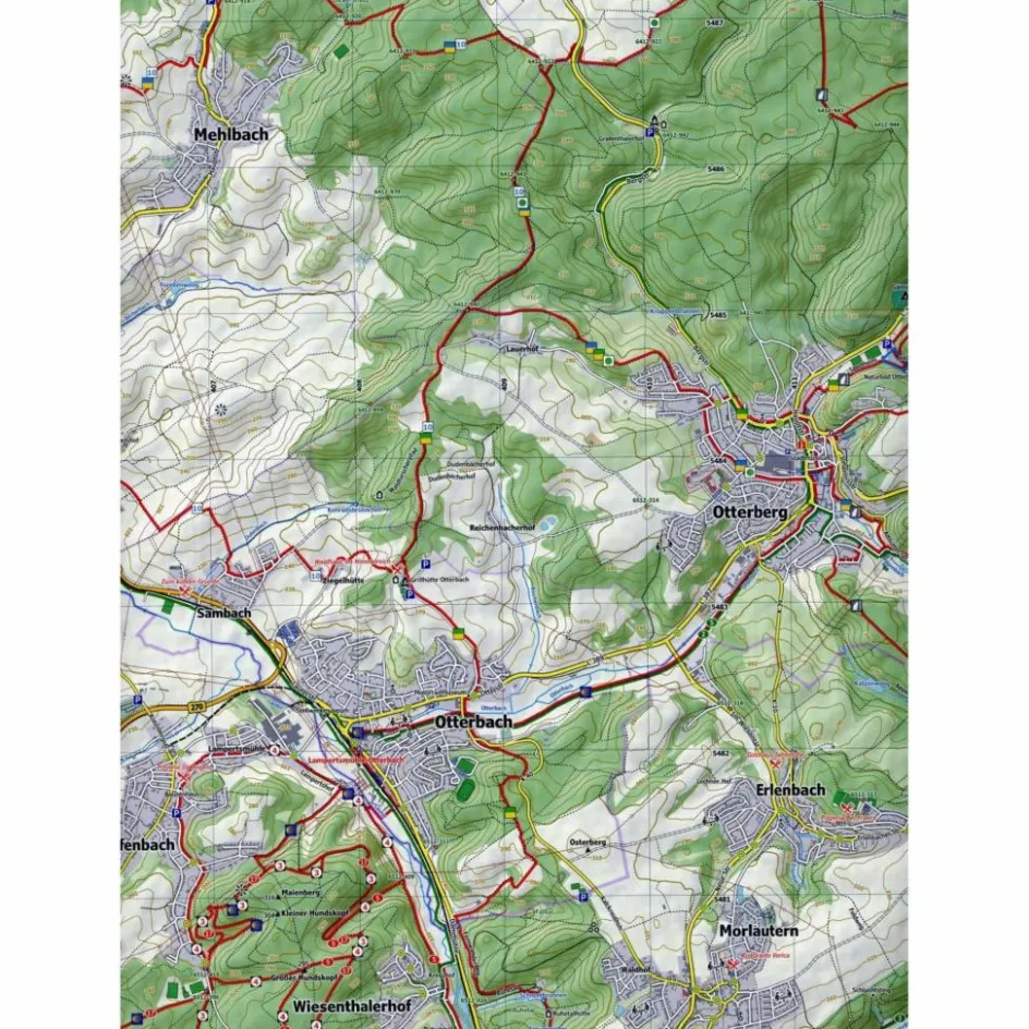 Detaillierte Wander- und Radwege: Premiumwege, Wege des Pfälzerwald-Vereins, viele lokale Rundwege sowie FernwegeSehenswürdigkeiten, Attraktionen und Restaurants3D-Darstellung der Landschaft mit HöhenlinienParkplätze und Parkhäuser sowie Haltestellen für Bus und BahnForstliche Rettungspunkte Schnellsuch-Register für Städte, Ortsteile, Pfälzerwald HüttenInklusive Übersichtskarte Rheinland-Pfalz